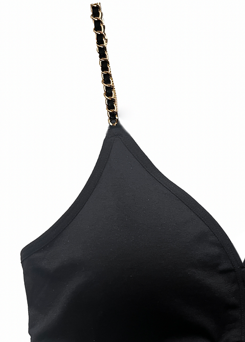 Bra w/Chain Strap. 92% Nylon, 8% Spandex.