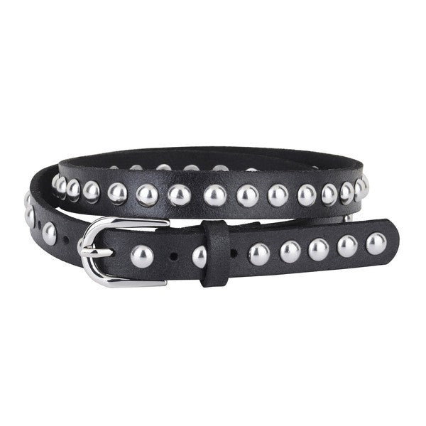 Skinny Round Studded Leather Belt