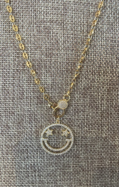 18 K Plated Gold Smiley Face on 24 Inch Chain