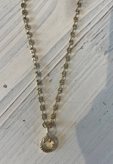 18K Gold Texture Smiley Charm 15-17 “ Chain