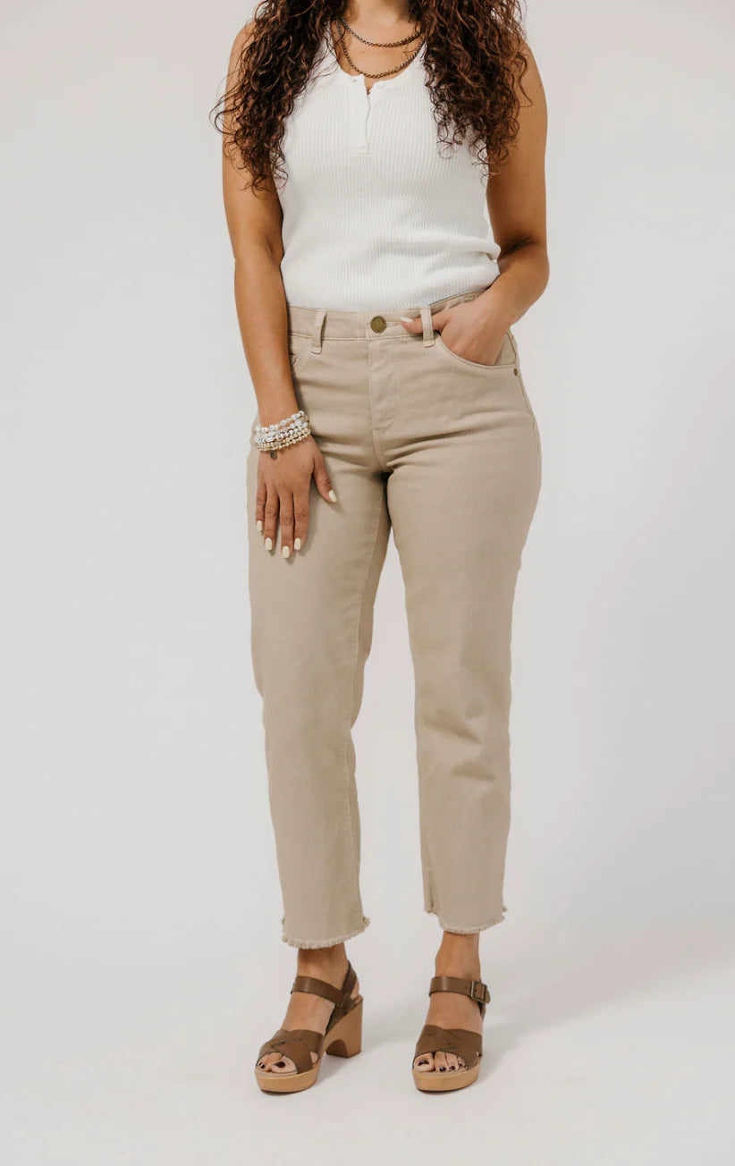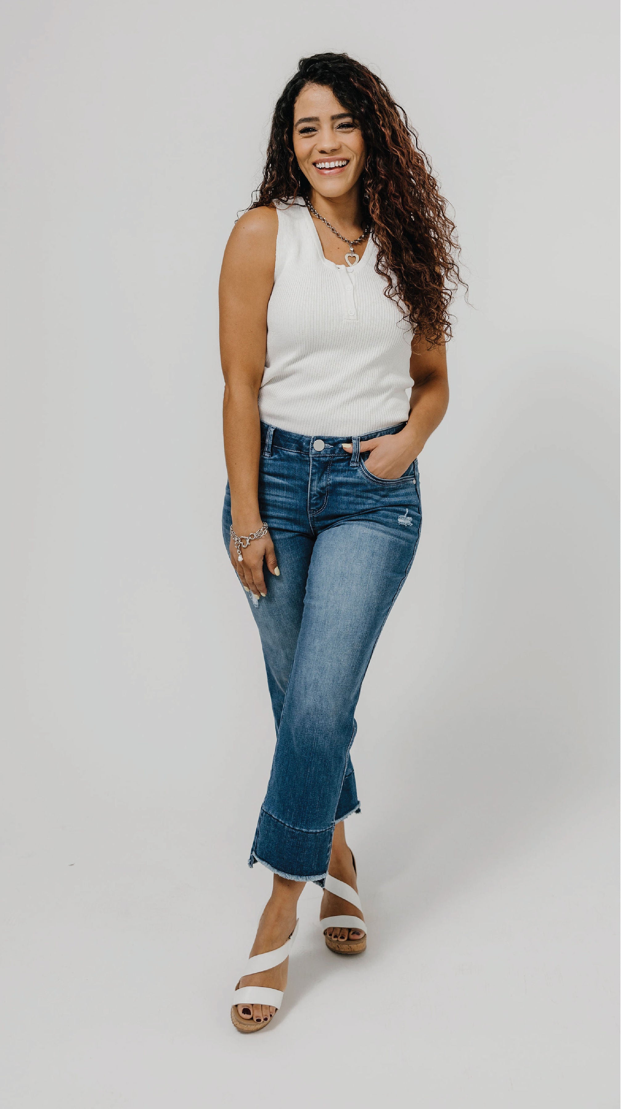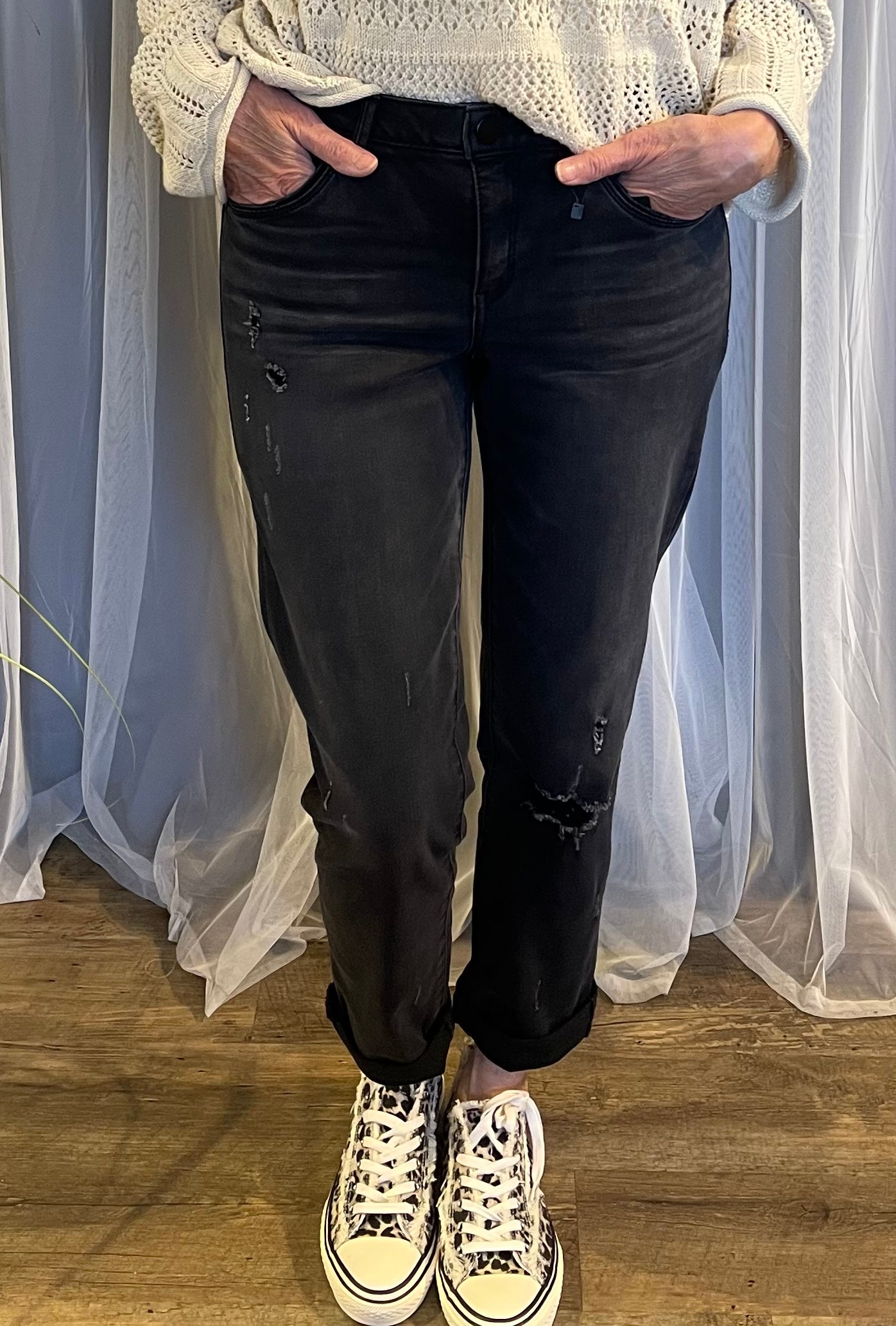 “AB” Solution Hi Rise Slim Straight w/ Frayed Slit Hem