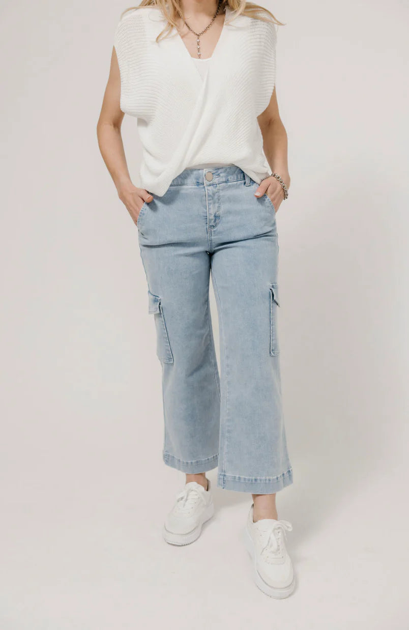 “AB” Solution High Rise Cargo Wide Leg W/Slit Hem