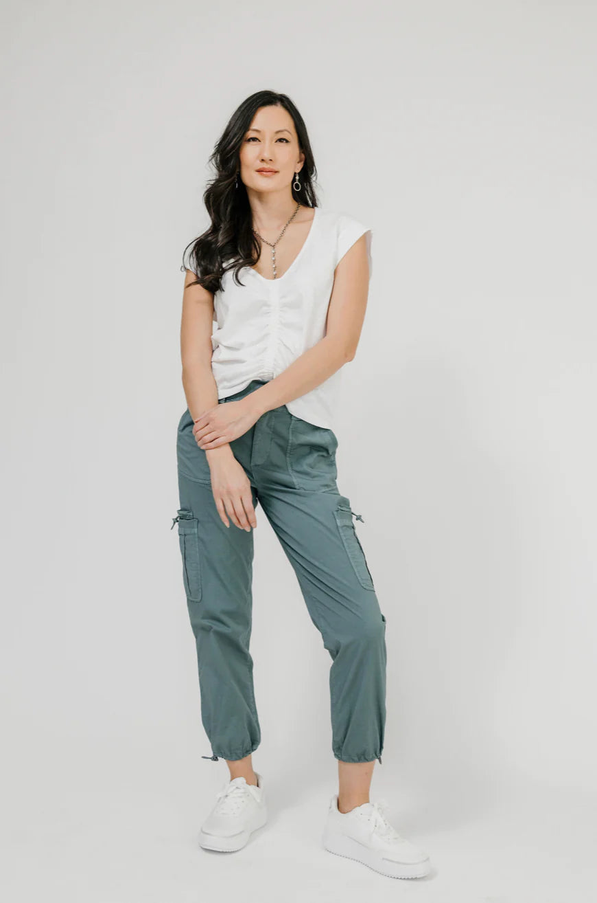 “AB” Solution Sky Rise Double Patch Pkt Pant w/ Drawstring Hem