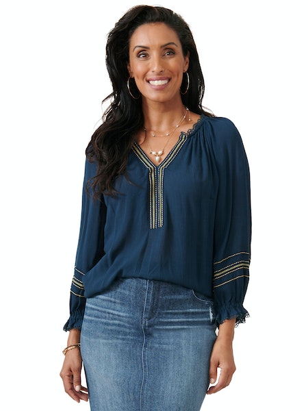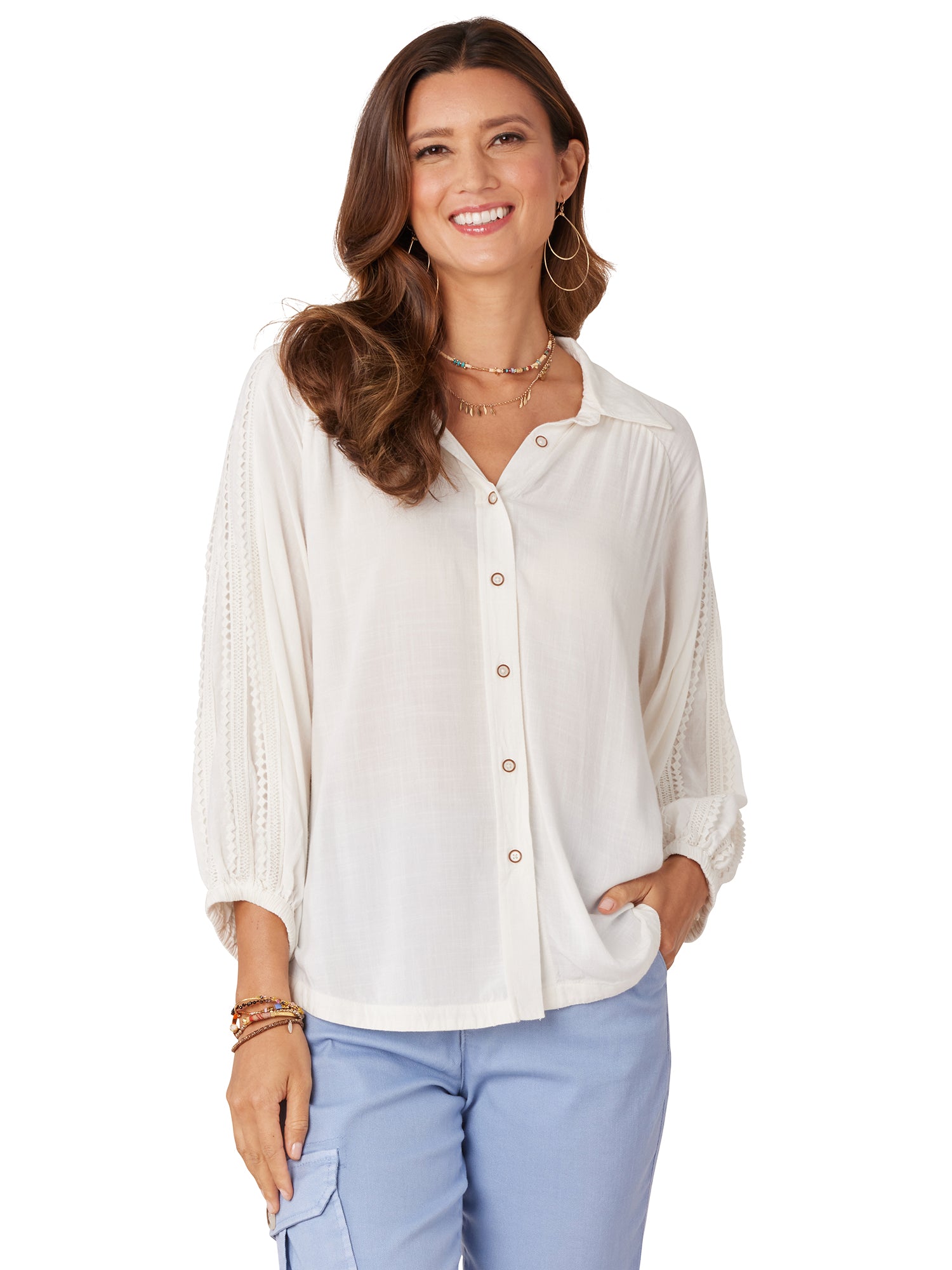 3/4 Blouson Sleeve w/ Crochet Inset Shirt