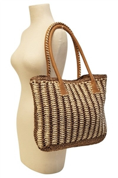 2 Tone Stripe Bag w/ Faux Leather Handles