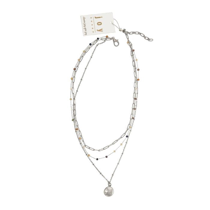 3 Row Multi Neutral Beaded Necklace