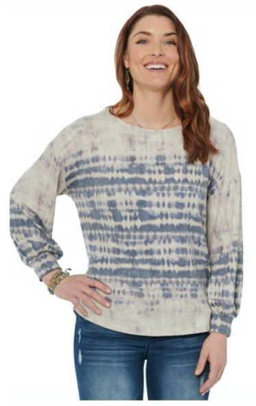3/4 Blouson Sleeve Half Placket Tie Dye Woven Top