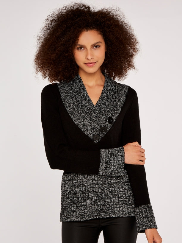 3 Button Mix Knit Sweater