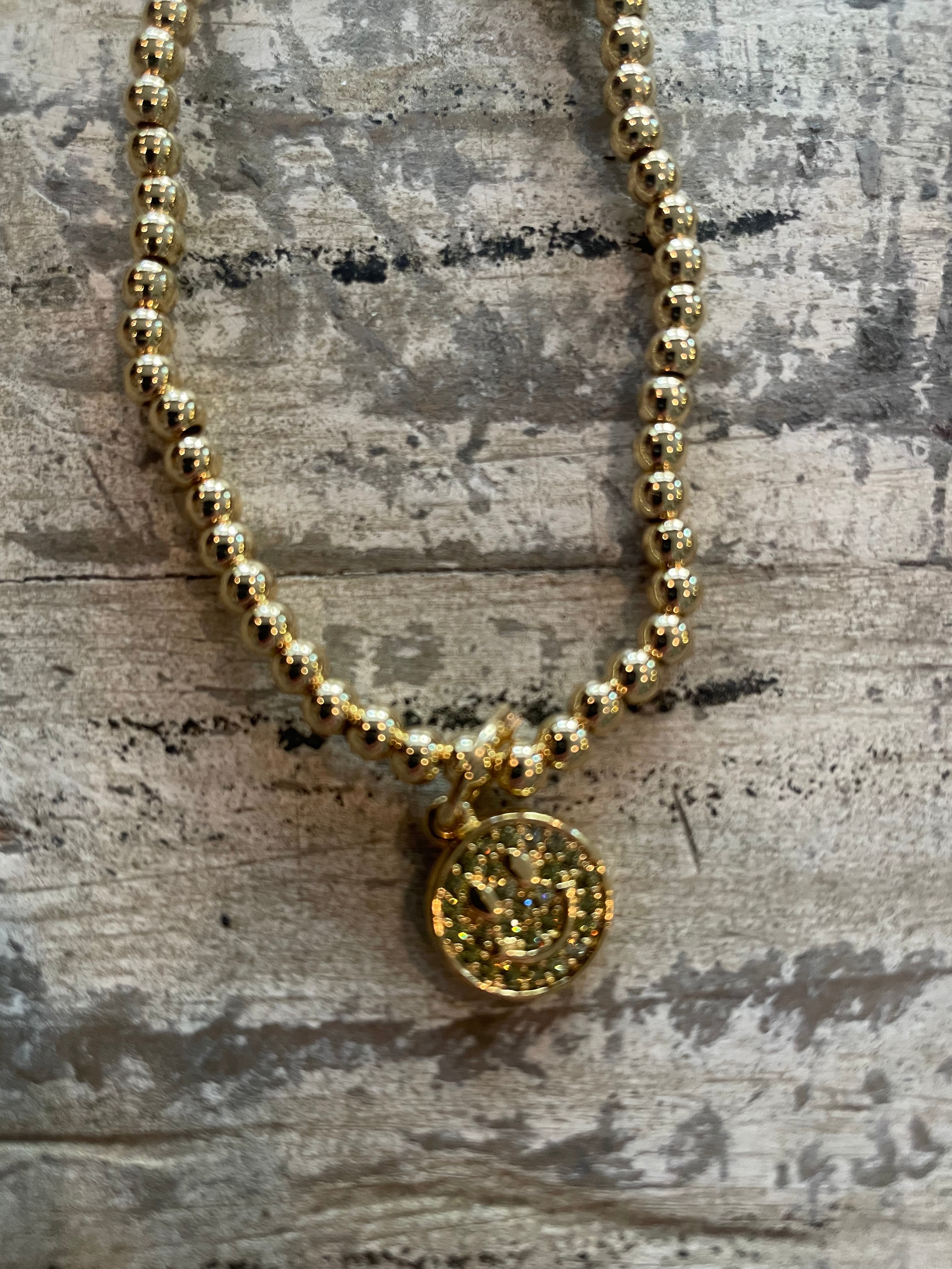 18K Plated Gold Bead Bracelet w/ Smiley Face