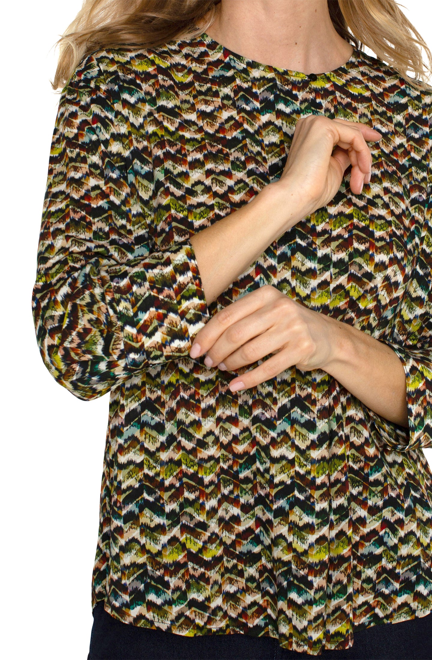 3/4 Blouson Sleeve, Print Knit Top
