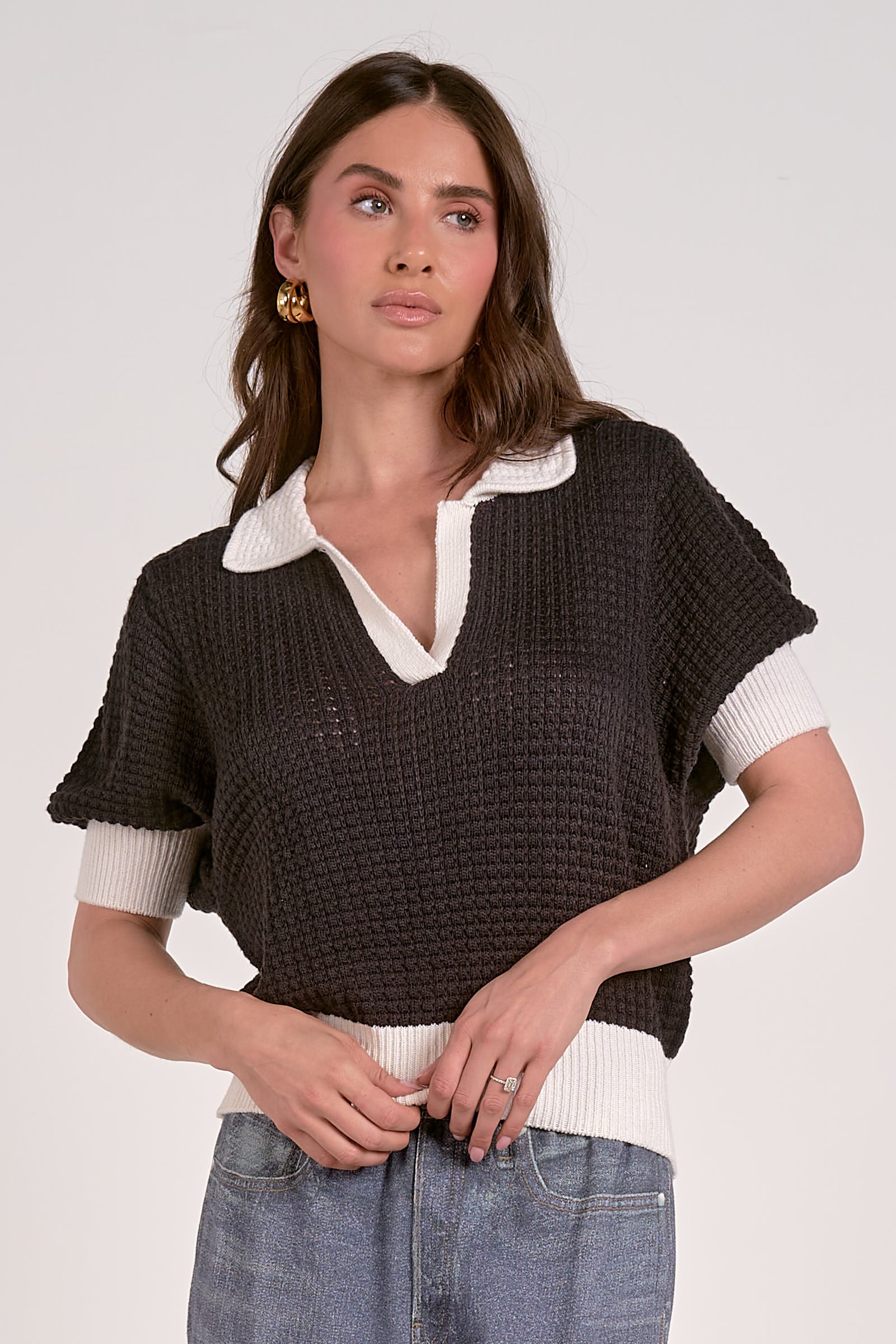 3/4 Sleeve Collared Sweater