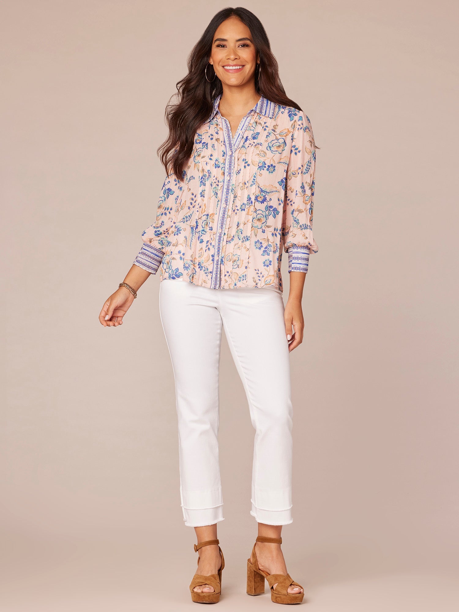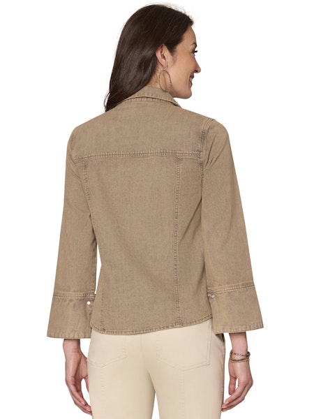 3/4 Sleeve Button Down Shirt w/ Scallop Edge