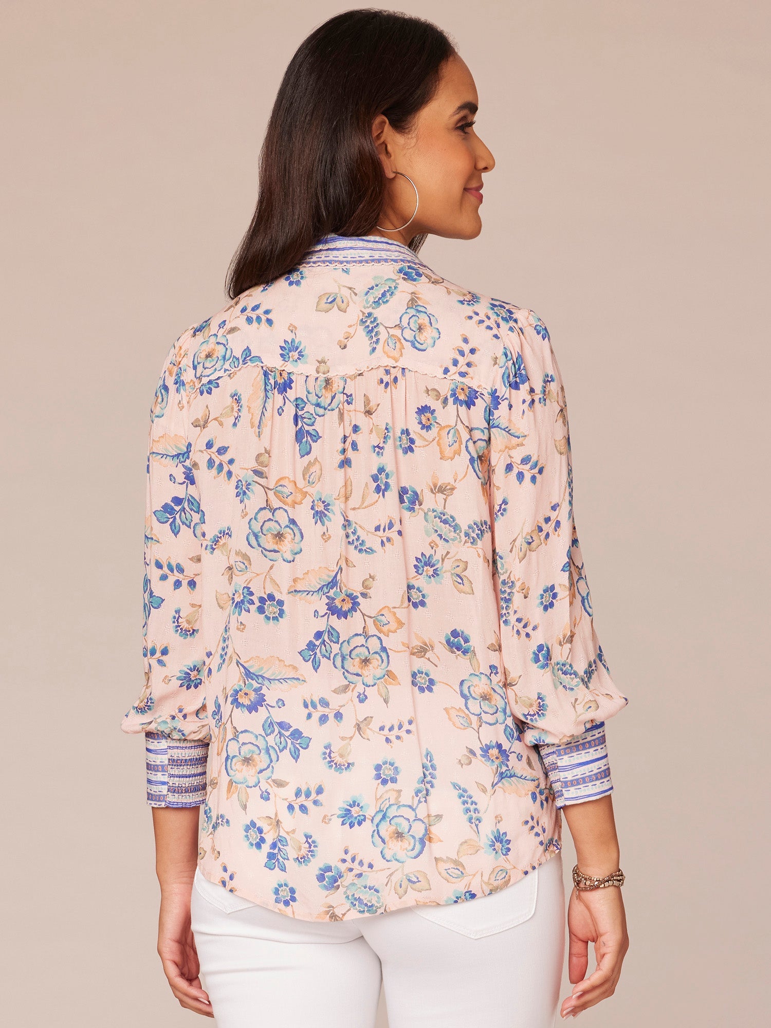 3/4 Sleeve Shirred Top