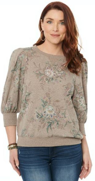 3/4 Blouson Slv Scoop Neck Sweatshirt