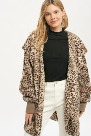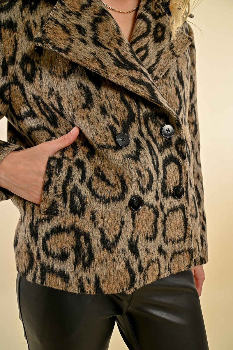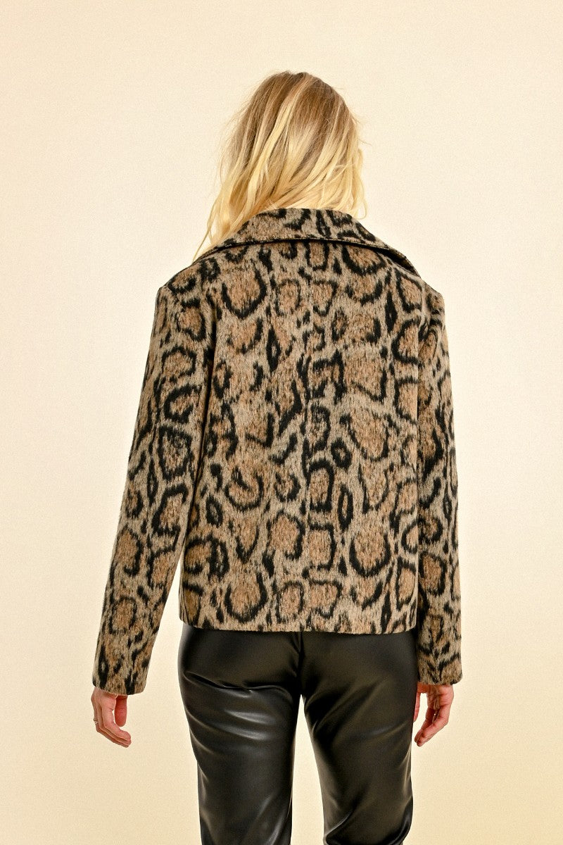 Animal Print Scuba Short Coat w/ Patch Pockets