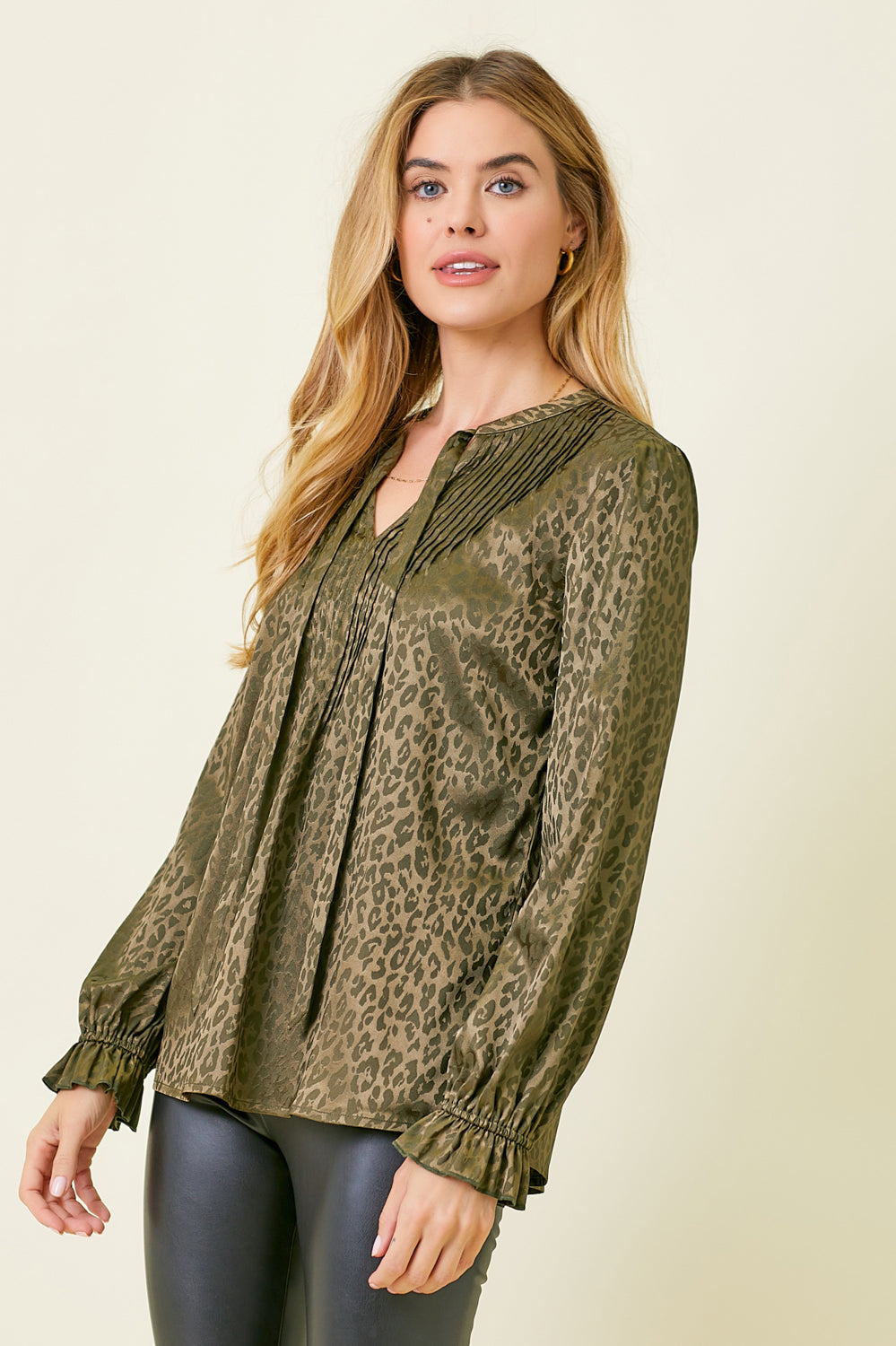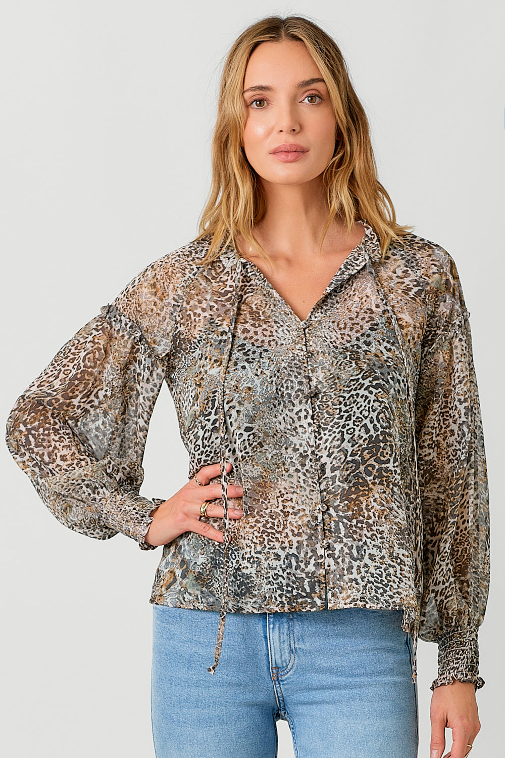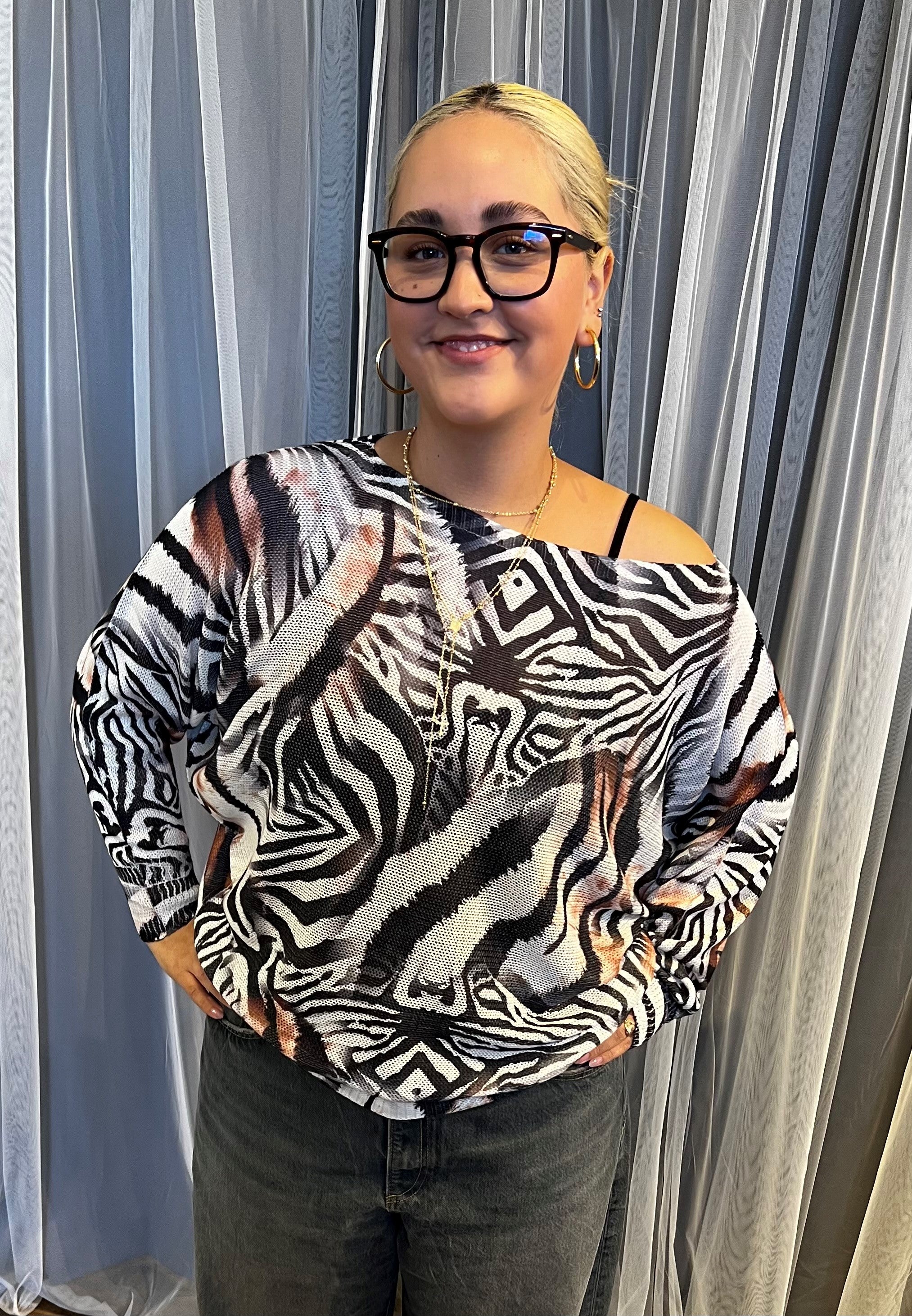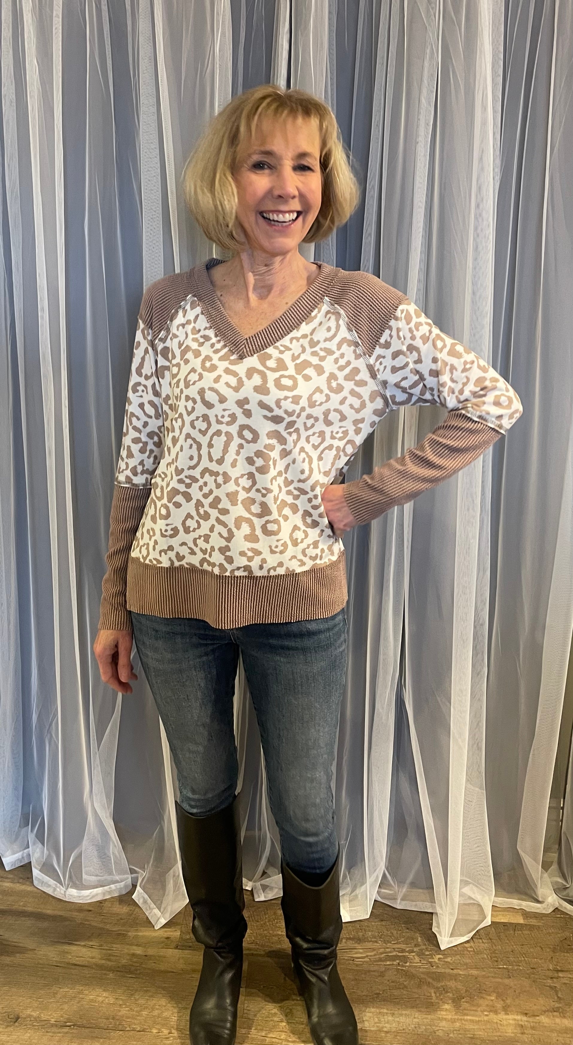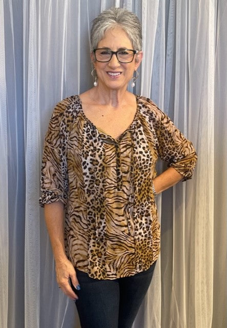 Animal Print Top W/ Lining and 3/4 Sleeve