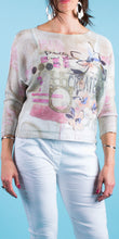 Batwing Mesh sweater Graphic Floral and Writing Print