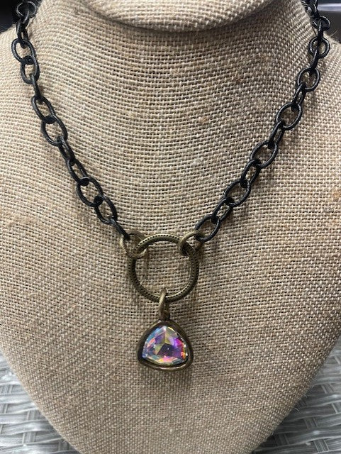 Aurora Borealis Pyramid Crystal Pendant On Mix Metal Chain