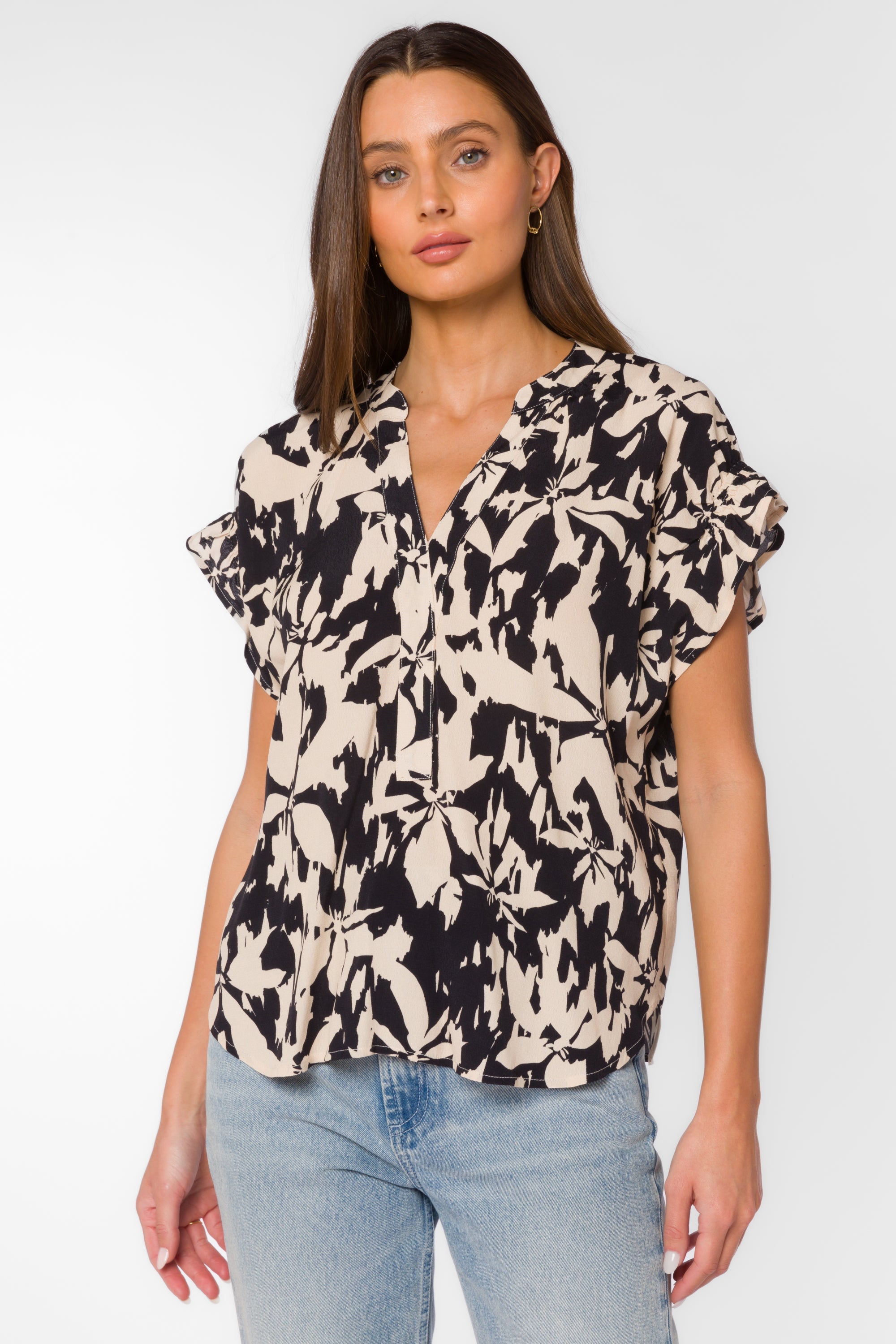 Avery Multi Ditsy Short Ruffled Sleeve Top