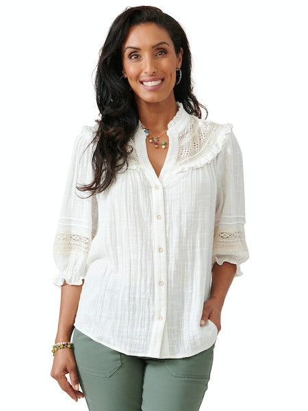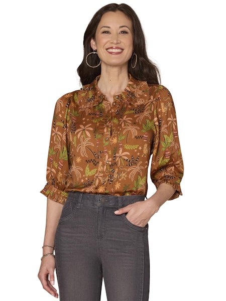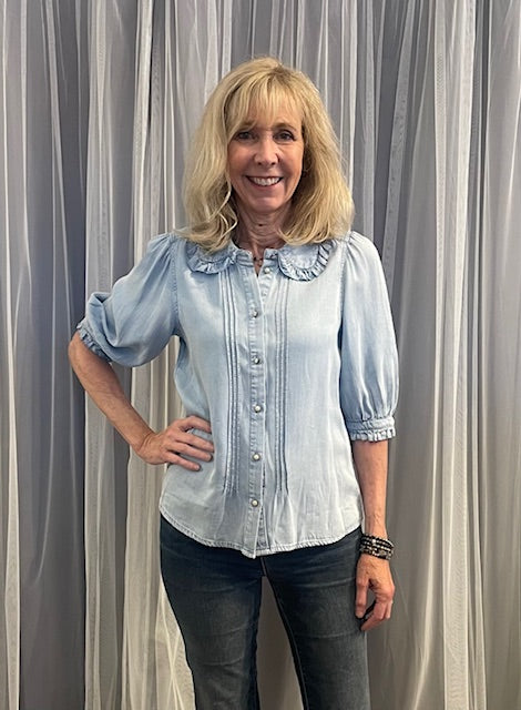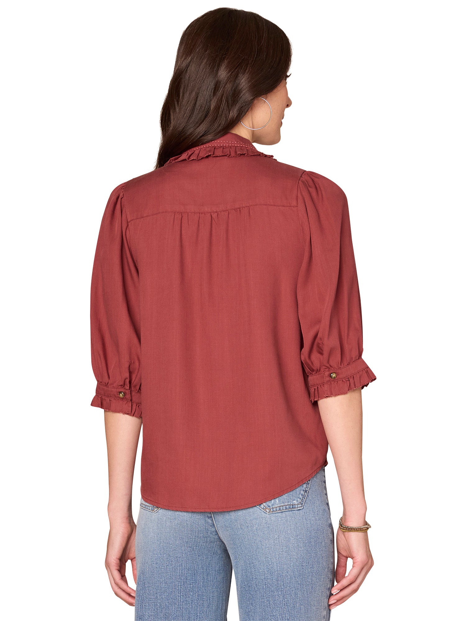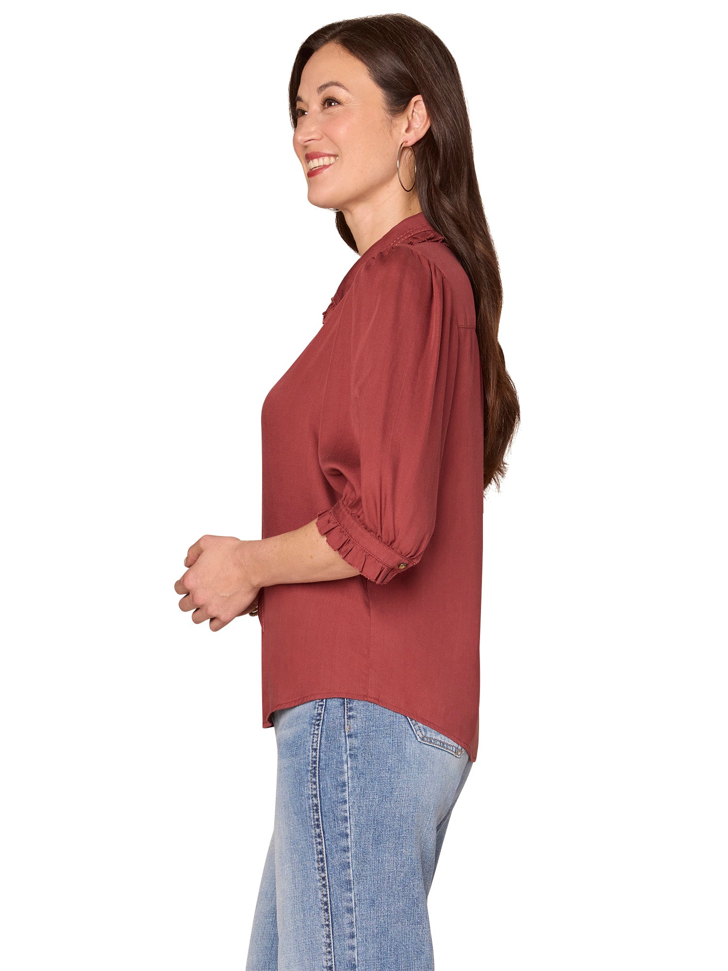 Below Elbow Sleeve w/ Ruffle Edge Neck
