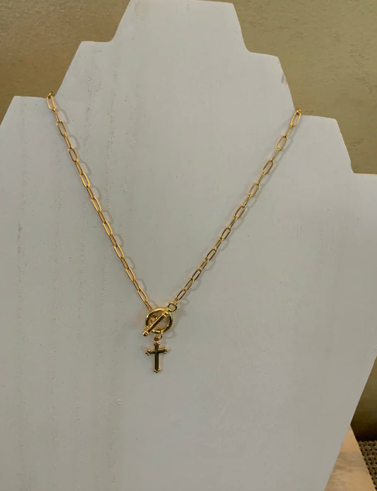 Bella Dainty 18K Gold Cross on Paperclip Chain