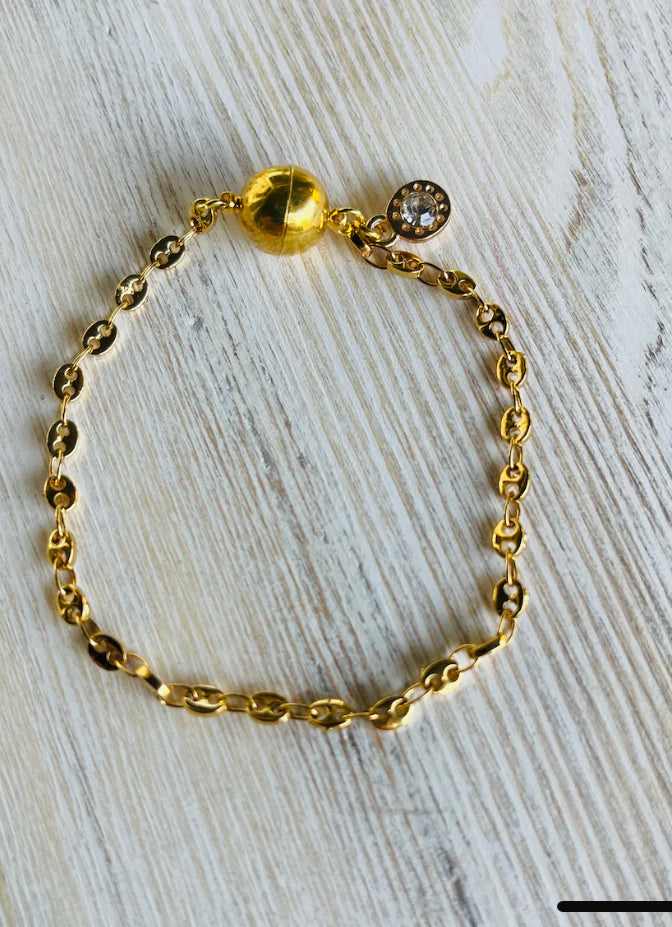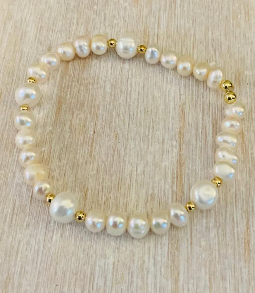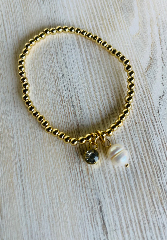 Bella Gold Bead Bracelet w/ Wrapped Freshwater Pearl