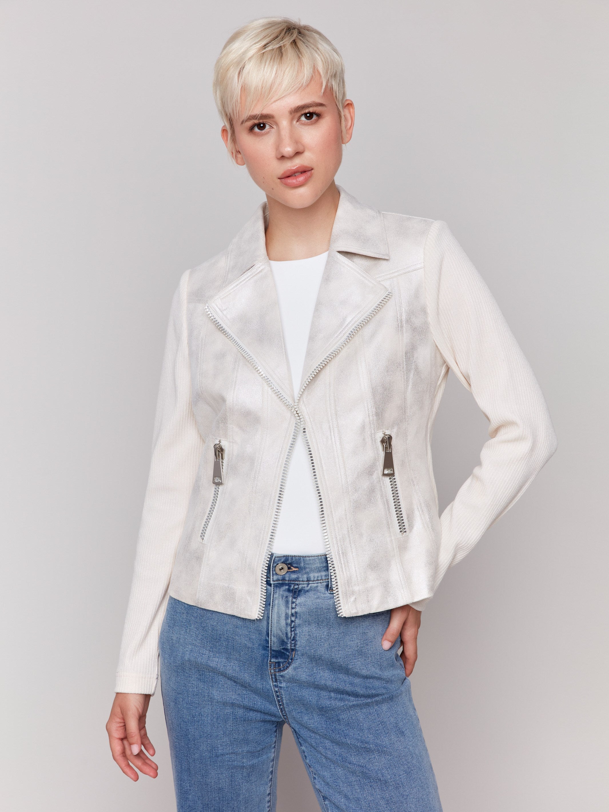 Vintage Fake Foil Leather and Rib Knit Combo Perfecto Jacket