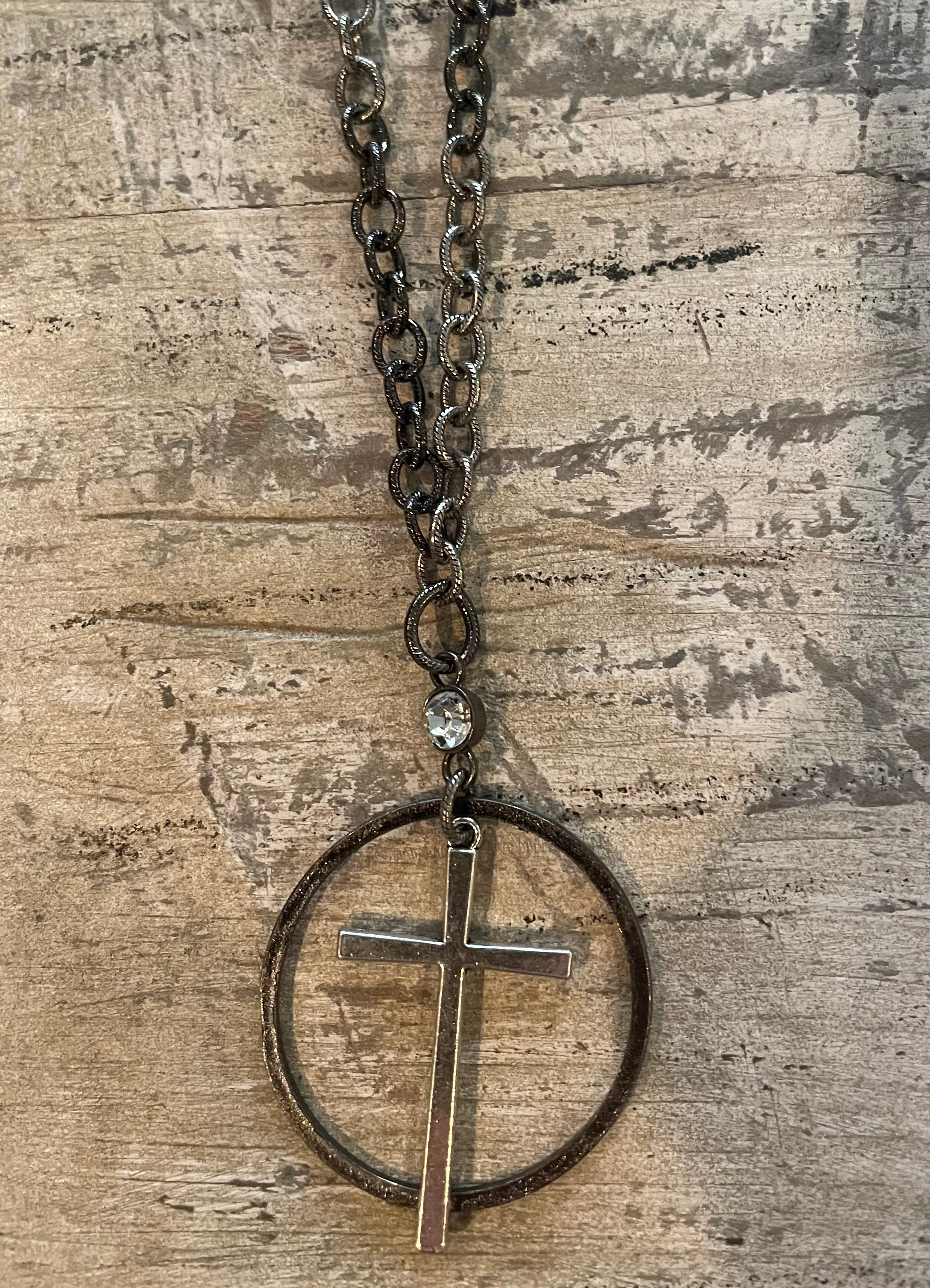 Vintage Inspired Cross w/ Hoop on Mixed Metal Chain