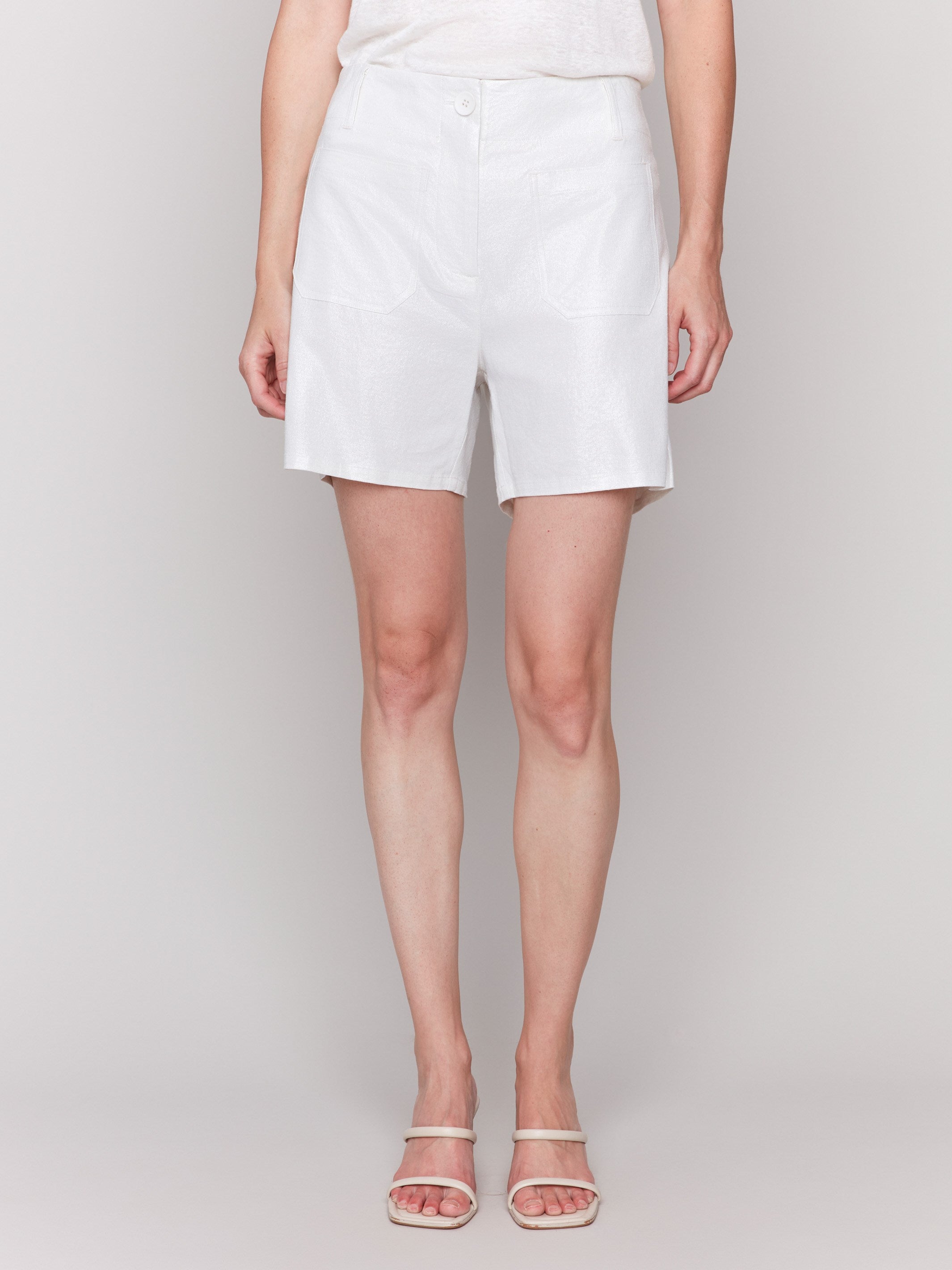 Foil Linen Stretch Short With Patch Pockets