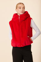 Stay stylish and cozy in our faux fur zip hoody vest, a chic layering essential for Fall. Featuring a soft plush texture, zip-front closure, and side pockets, this vegan fur vest is perfect for your season layering