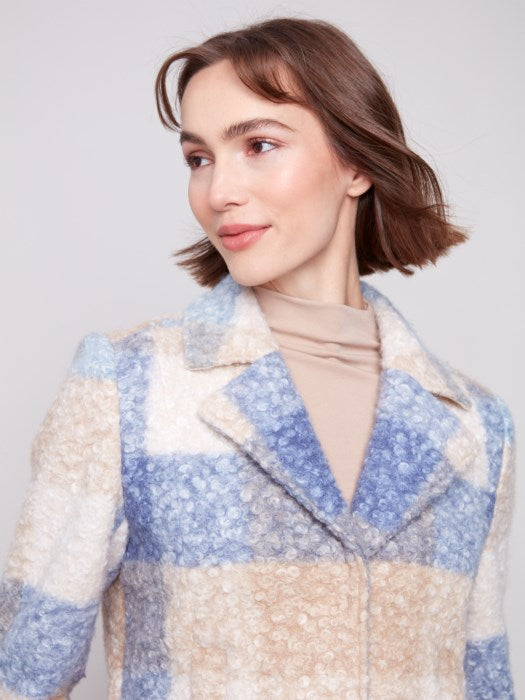 Plaid Boucle Knit Short Jacket With Hidden Snaps And Welt Pockets