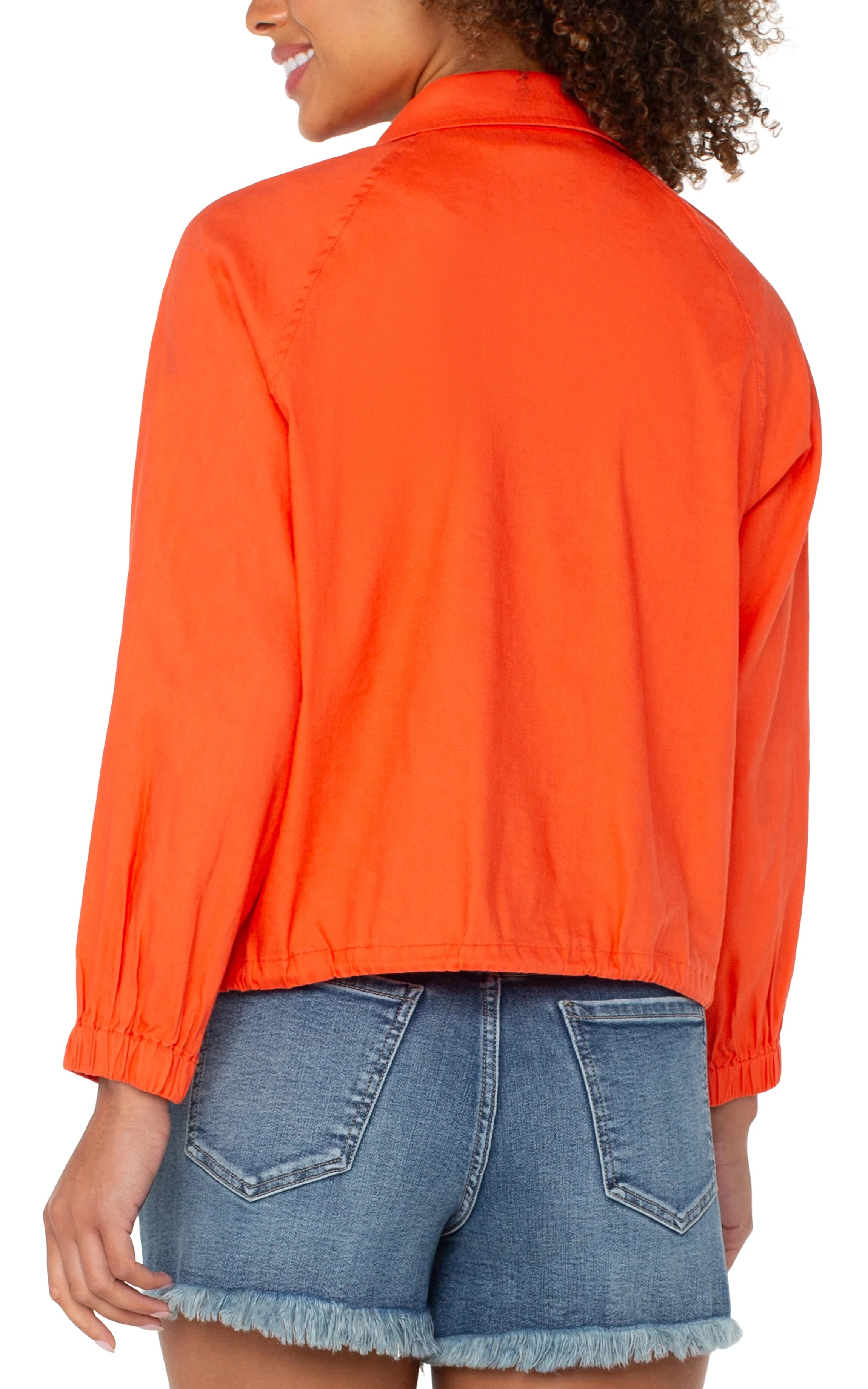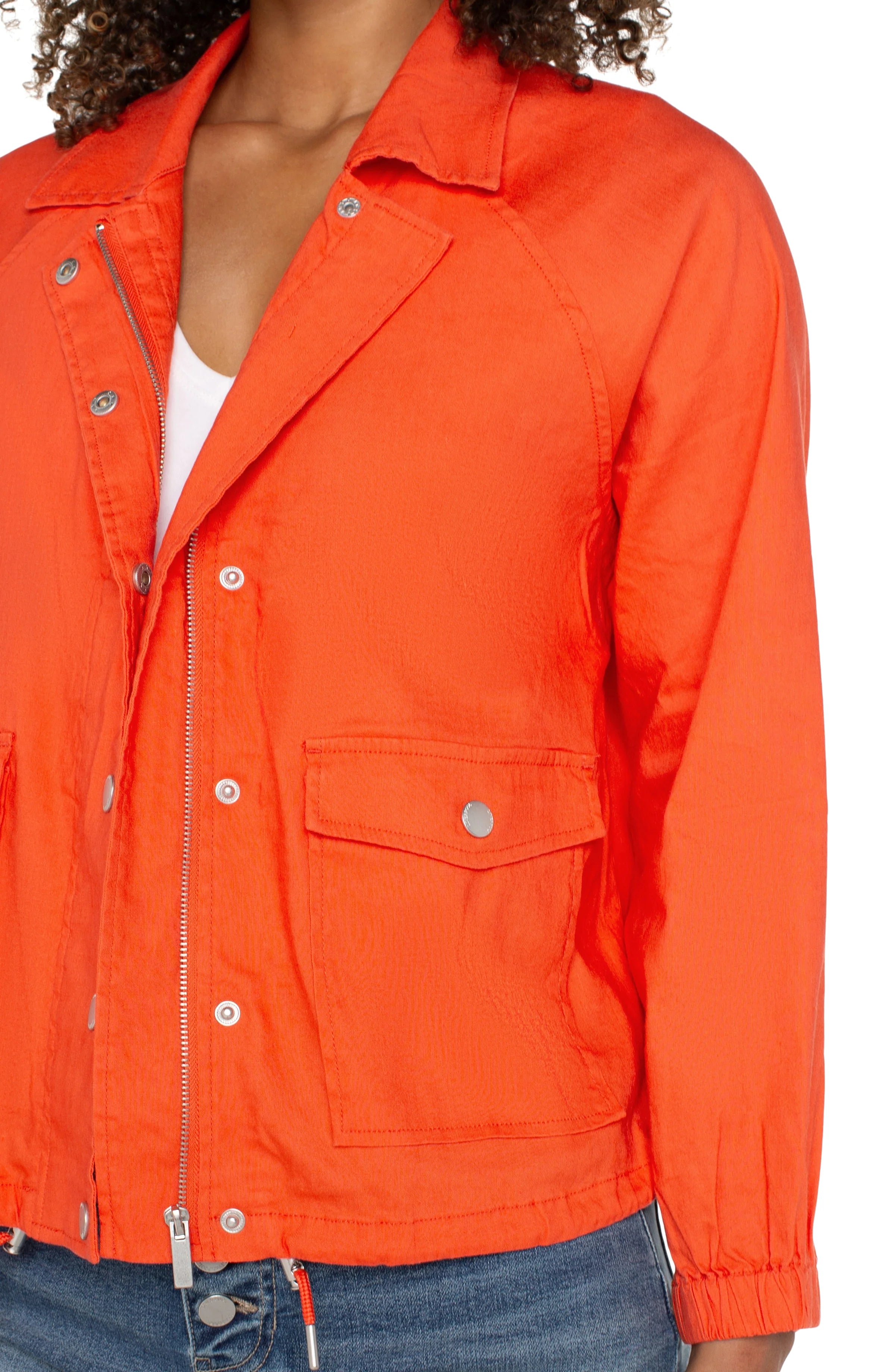 Expertly designed in a stunning Clementine color, this jacket features a cinch hem for a customized fit and raglan sleeves for a refined, yet laid-back aesthetic.