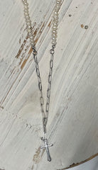 Medium Cross on Mixed Paper Chain& Freshwater Pearls