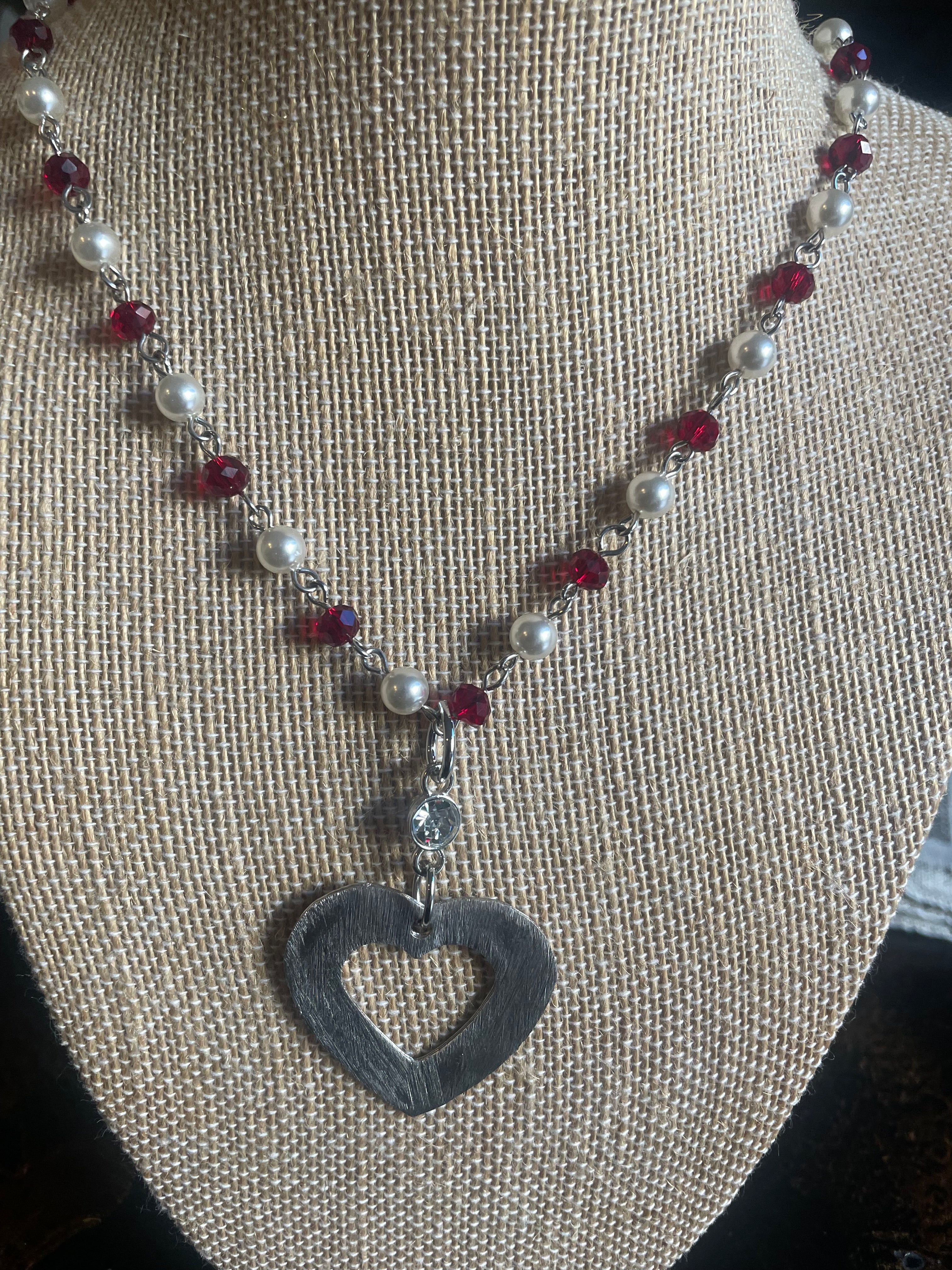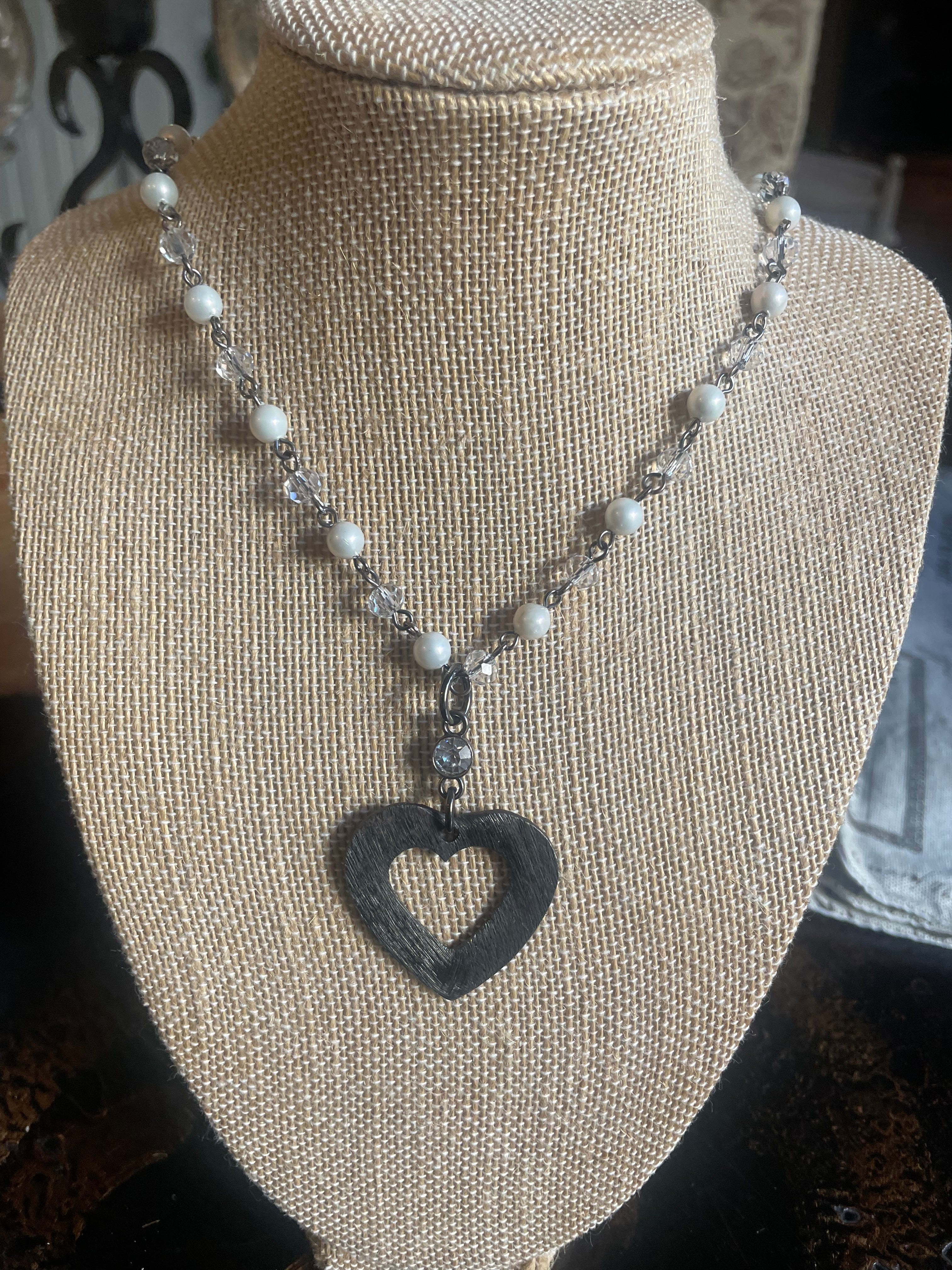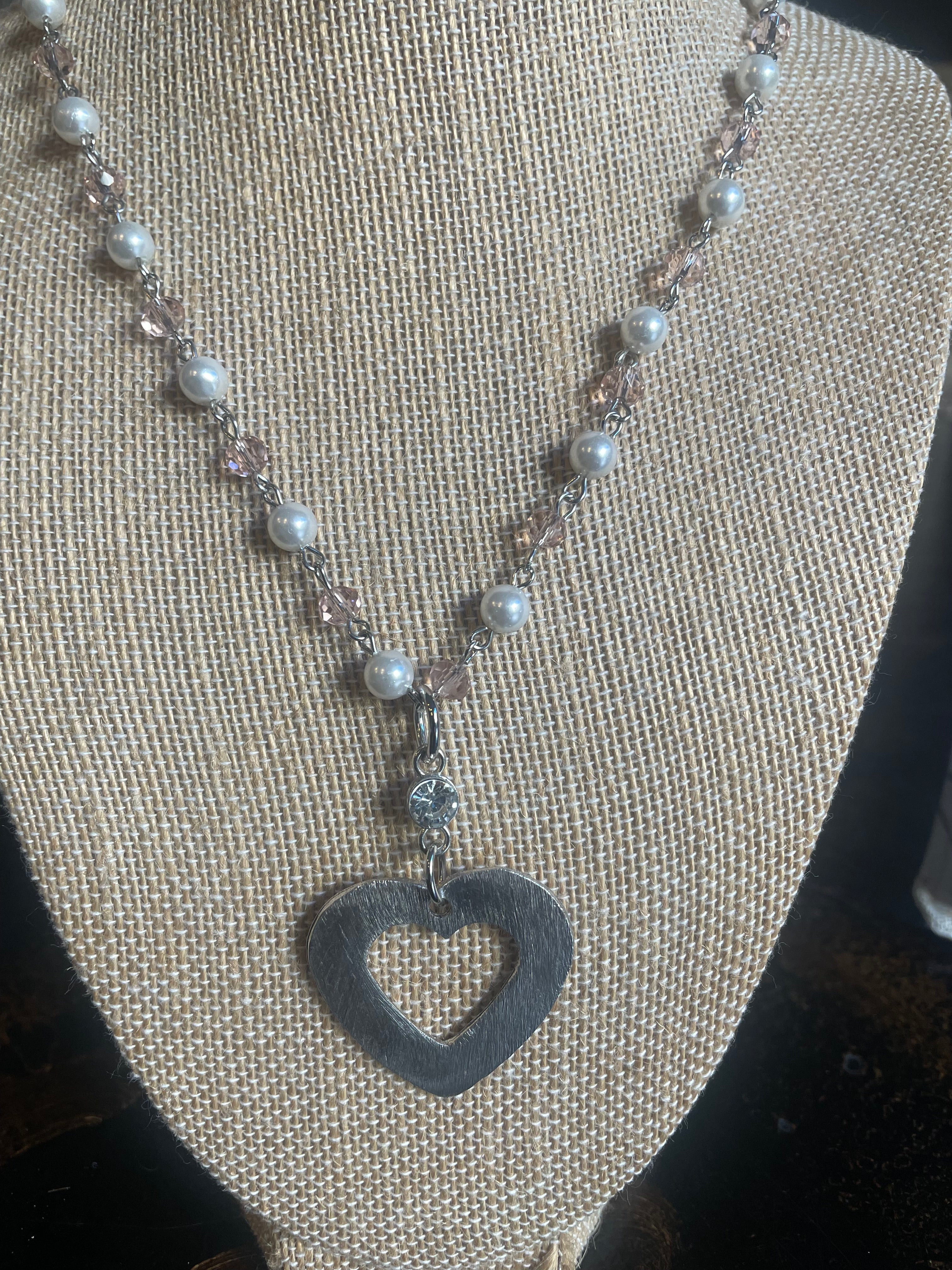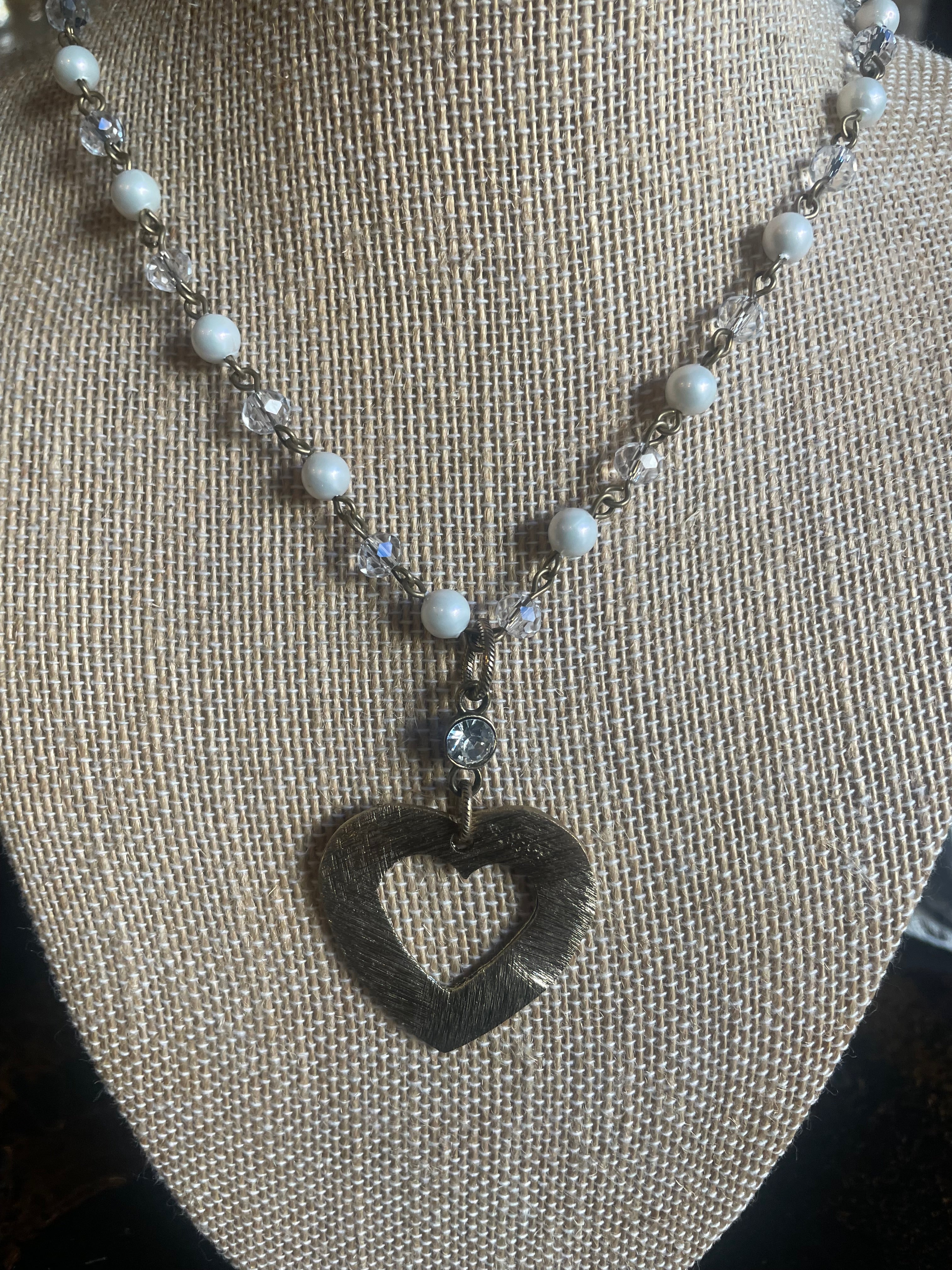 Mixed Pearls & Crystal Chain with Metal Open Heart