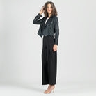 Rayon Ponte Knit Pleated Wide Leg Pant w/Pockets