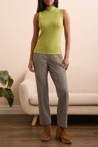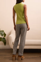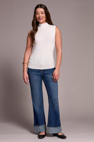 Textured Sleeveless Mock Neck Top. 70% Rayon, 30% Polyester.