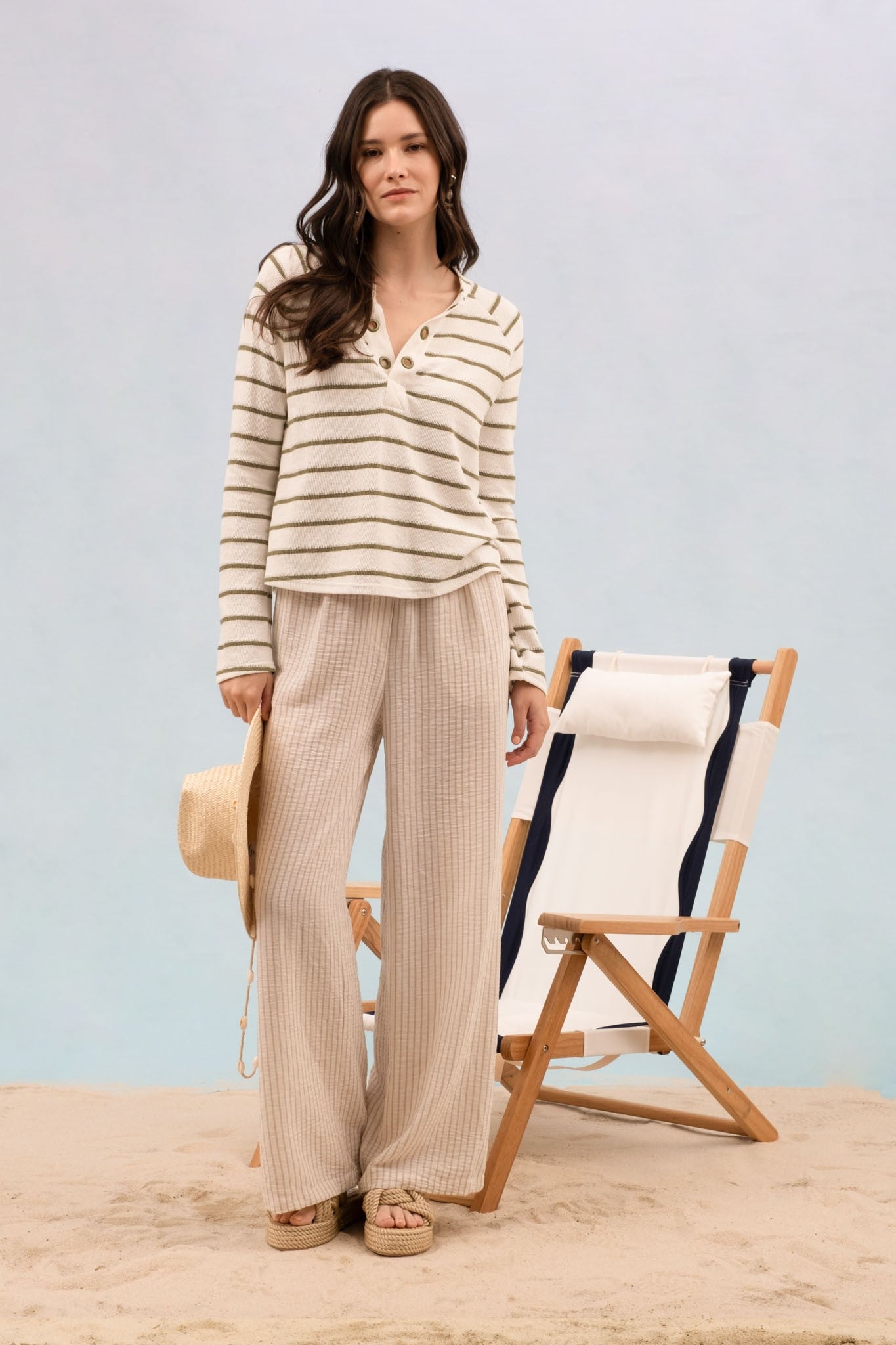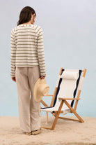 Stripe Metal Eyelet Detail Raglan Sleeve Knit Top. 75% Polyester, 25% Cotton.