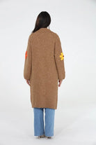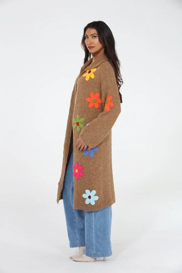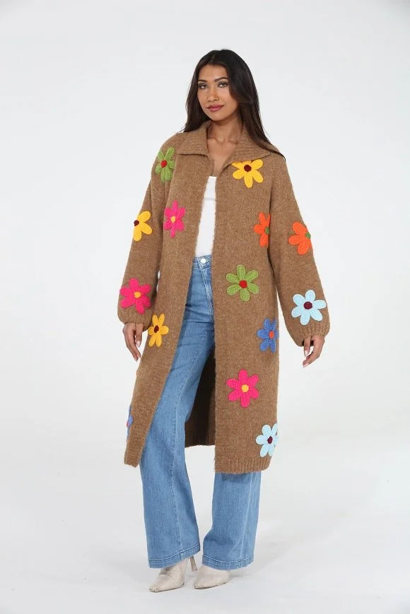 Full Length Sweater Coat w/Embroidered Floral Pattern