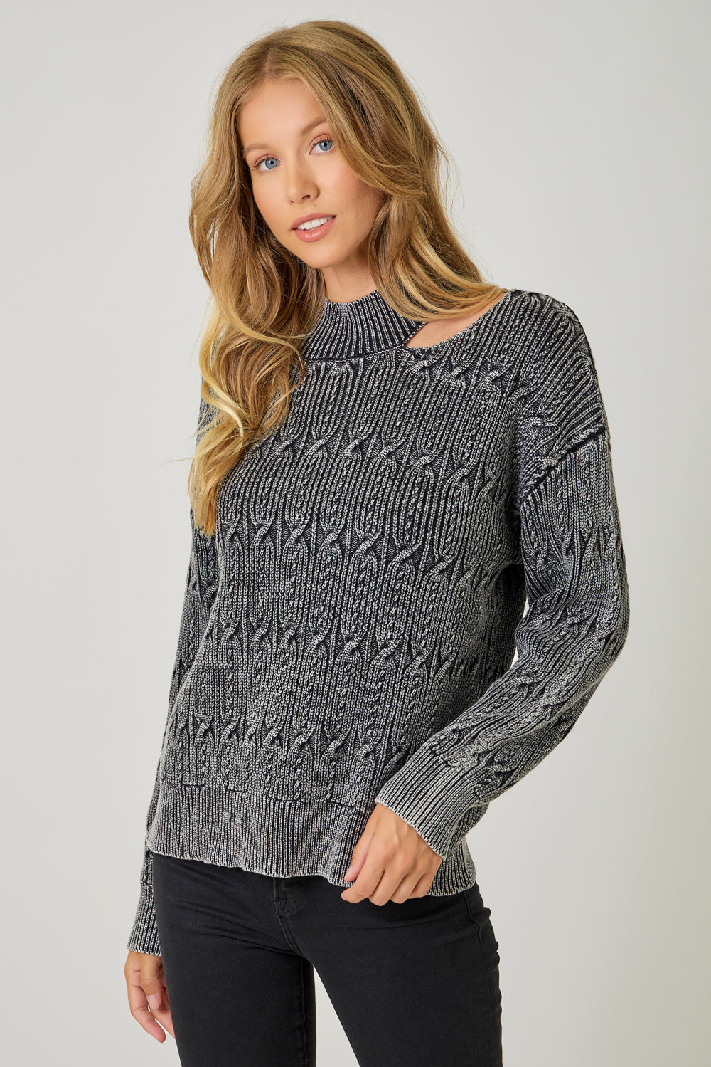 Cut-Out Mock Neck Sweater