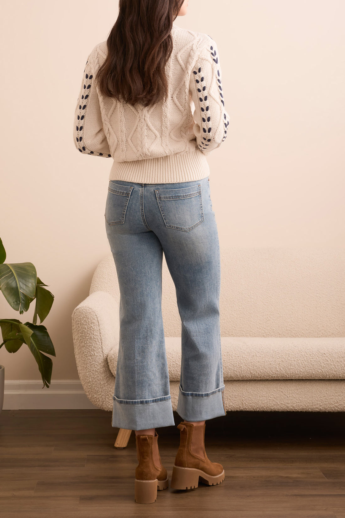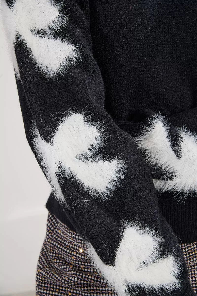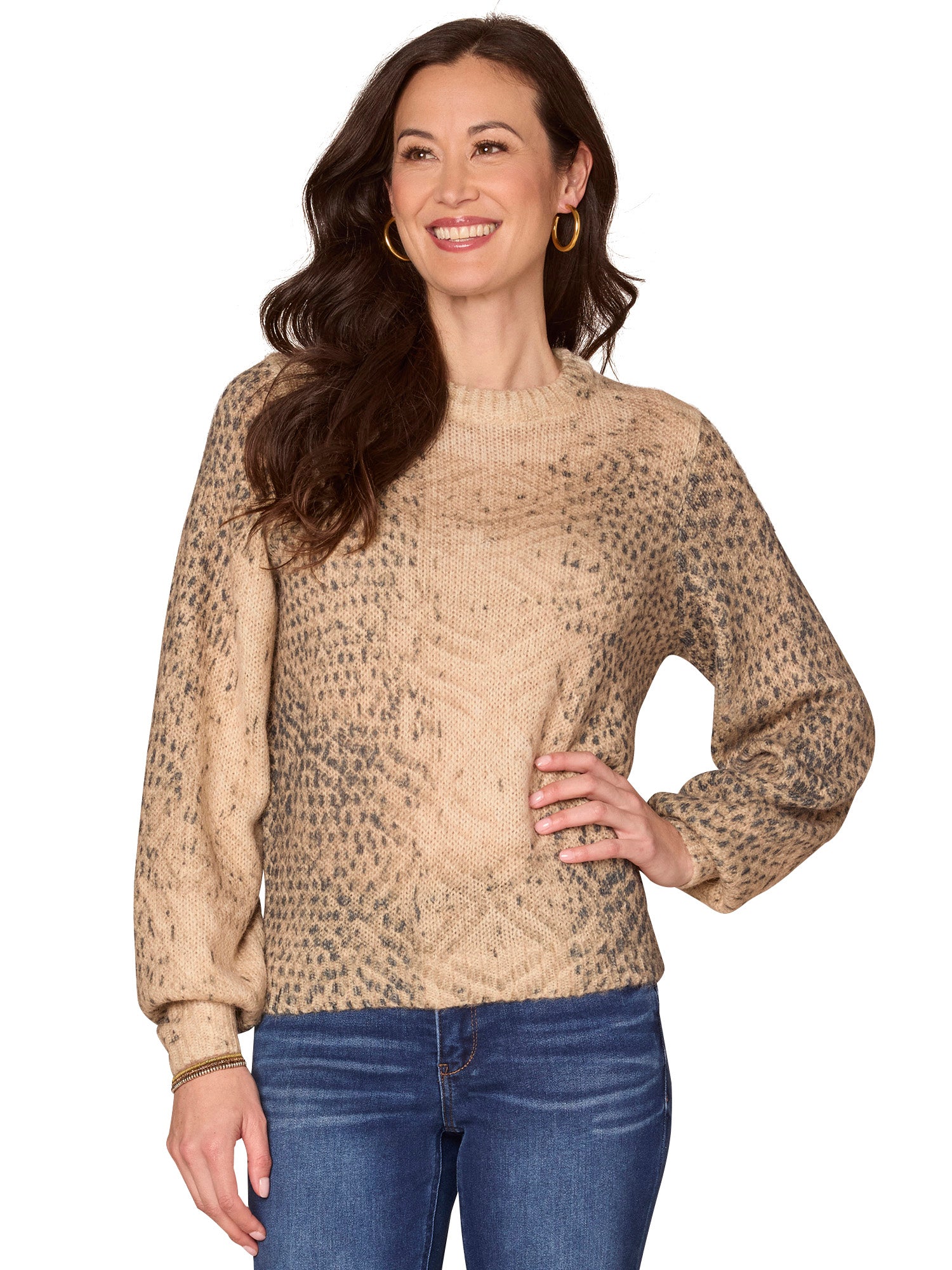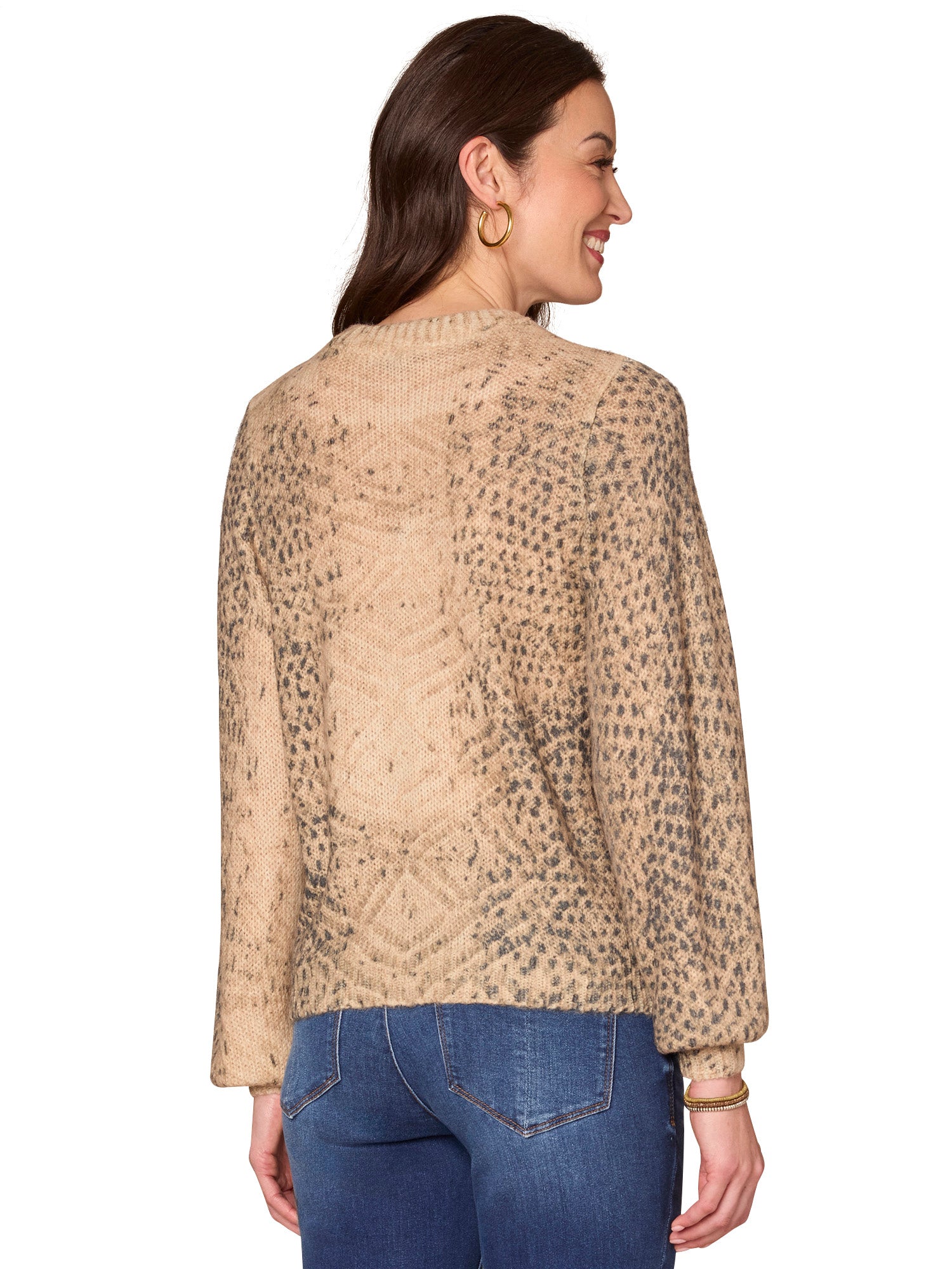 All Over Jacquard Sweater w/ Turn Cuff Sleeves