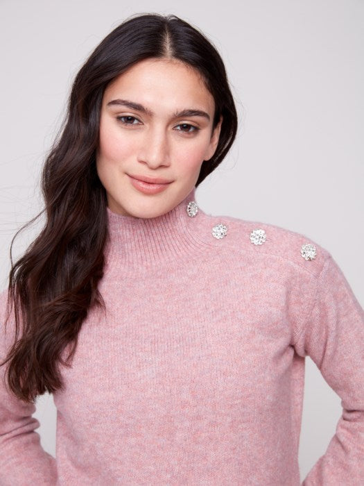 Mock Neck Sweater With Fancy Button At Neck