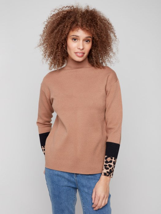 Funnel Sweater w/ Color Block Detail At Sleeves