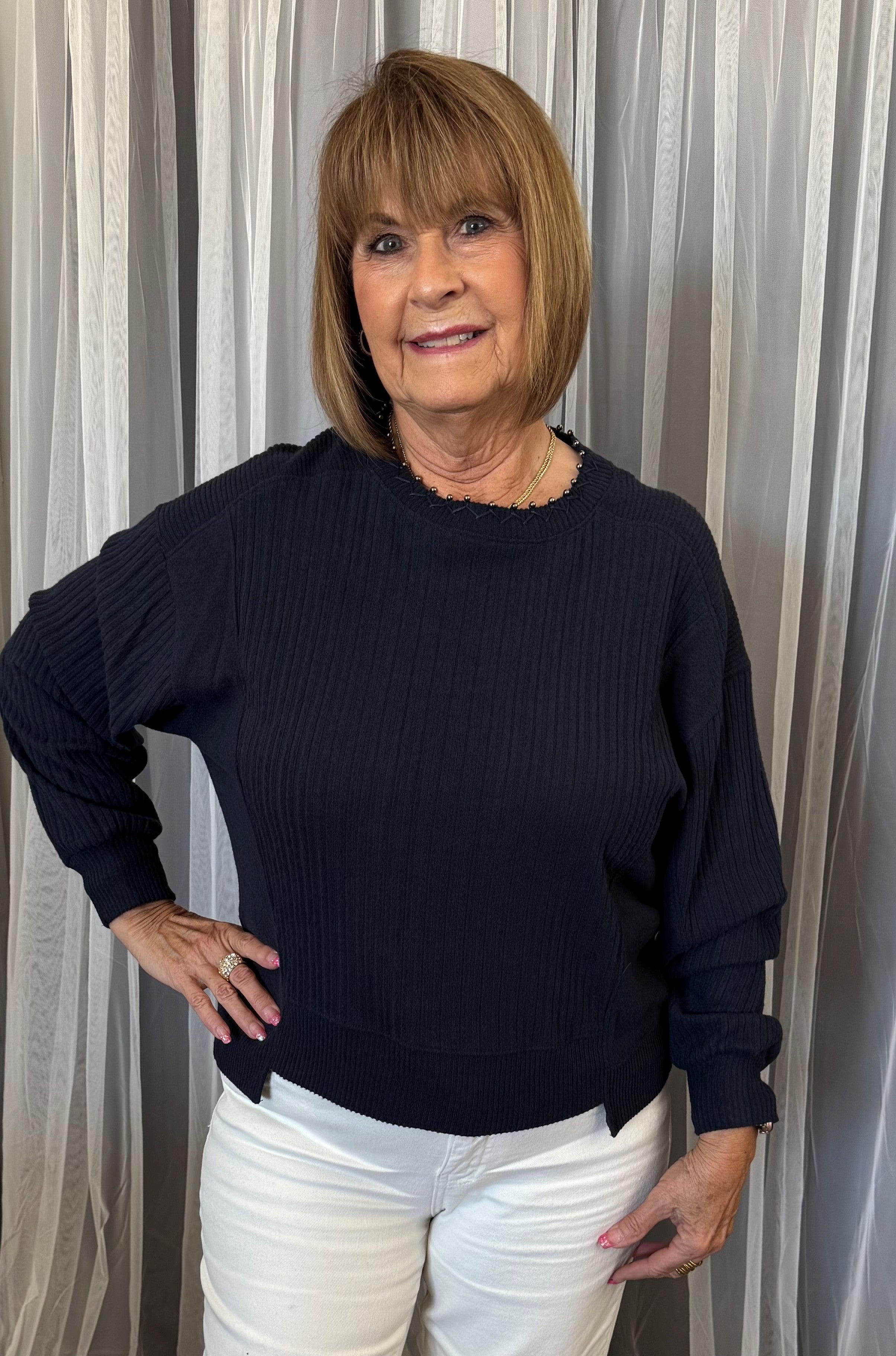 Funnel Neck Top w/Stitching
