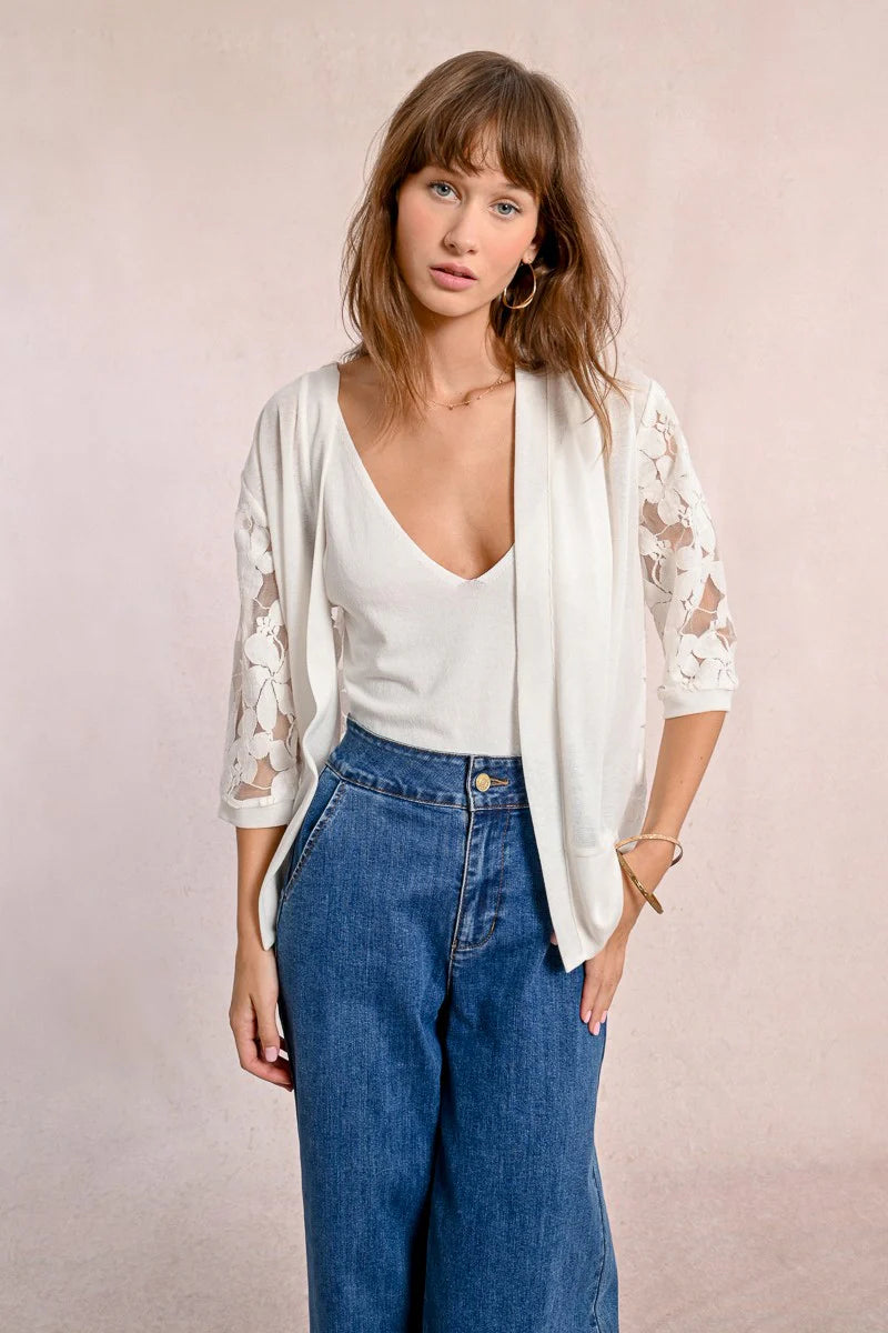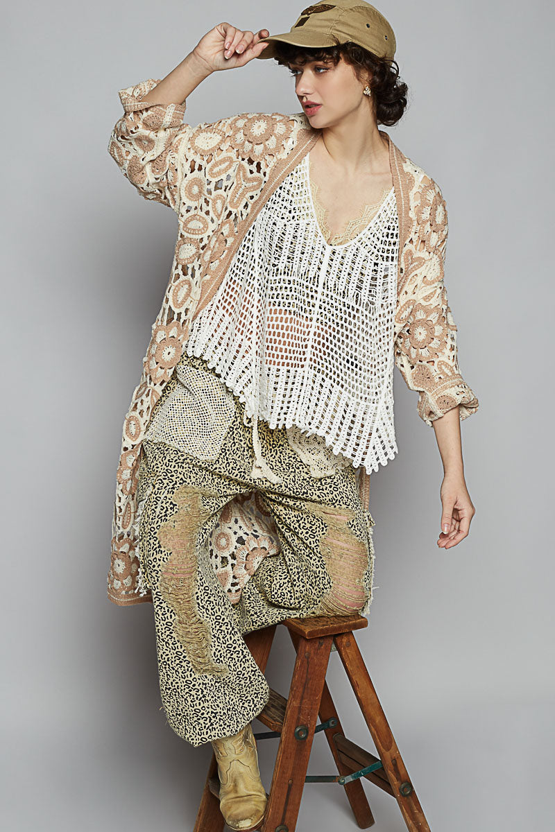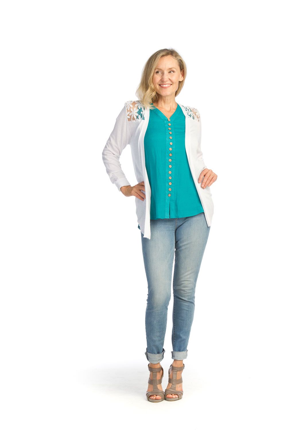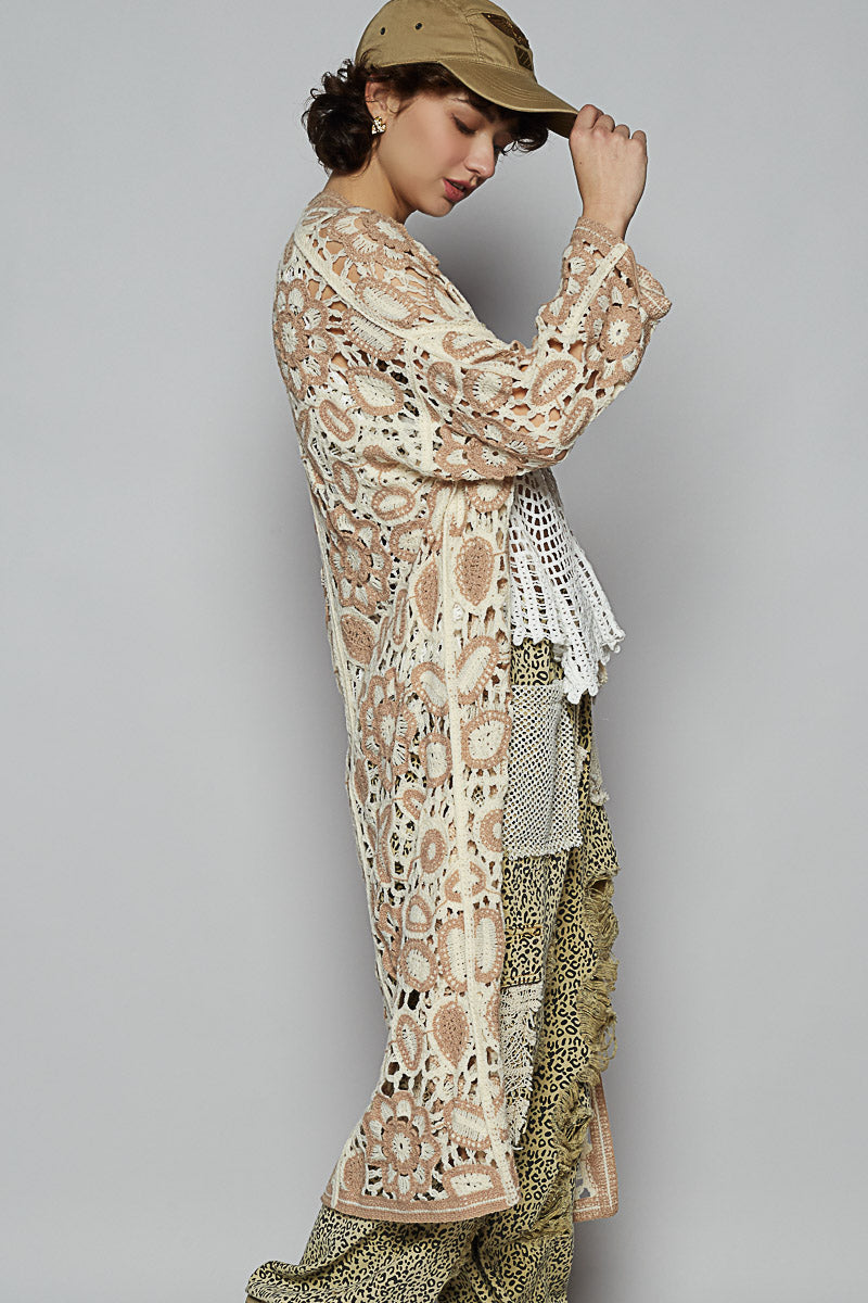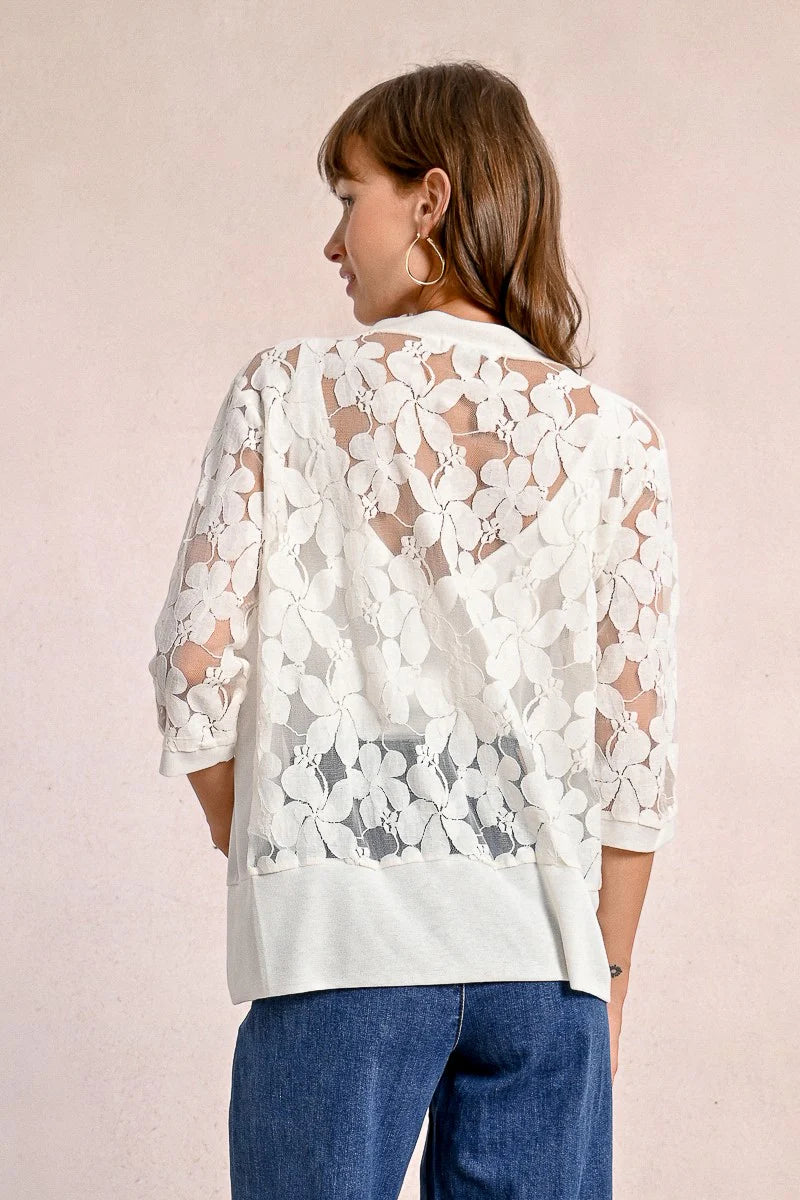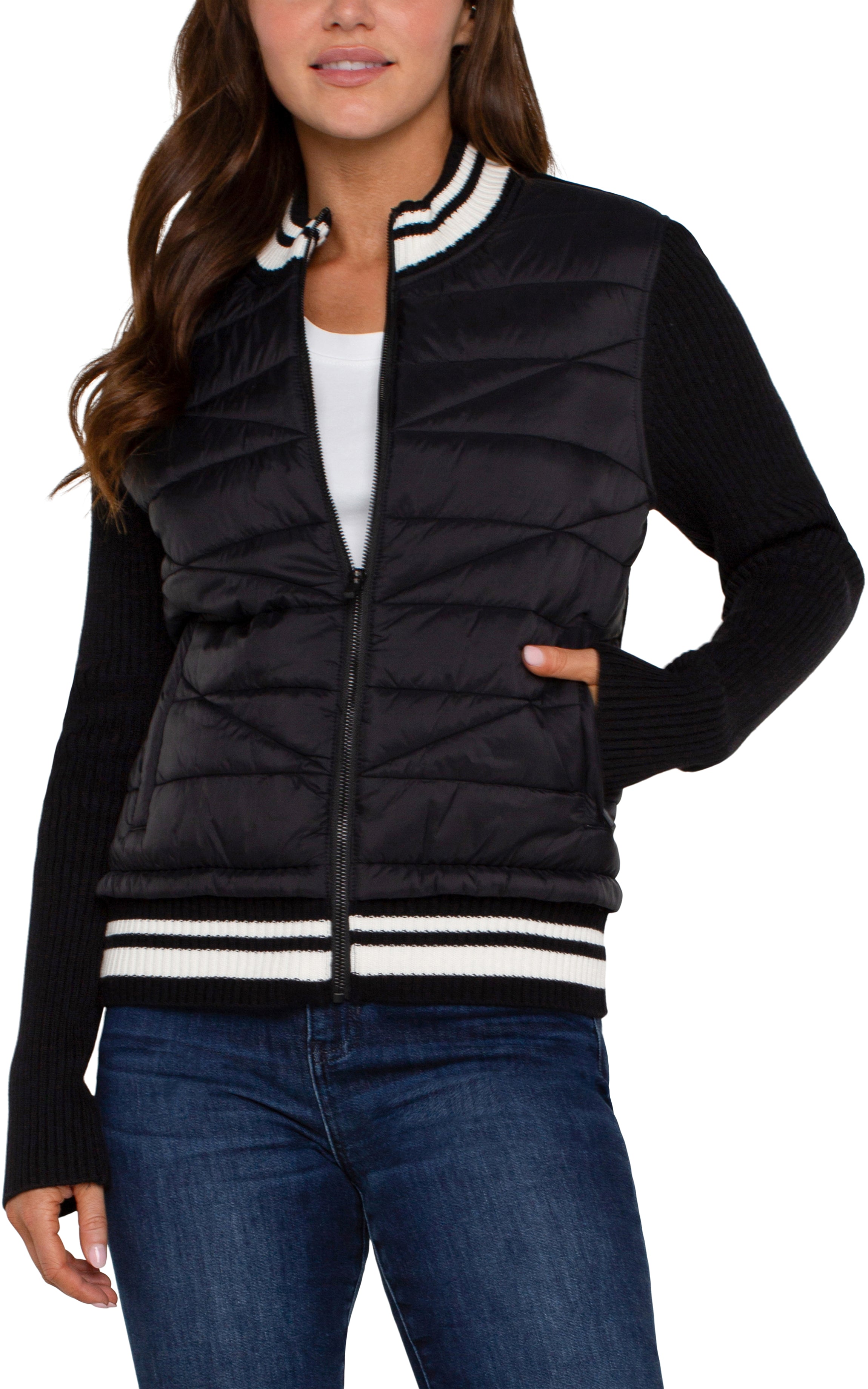 Long Sleeve Quilted Front Full Zip Sweater w/ Stripe