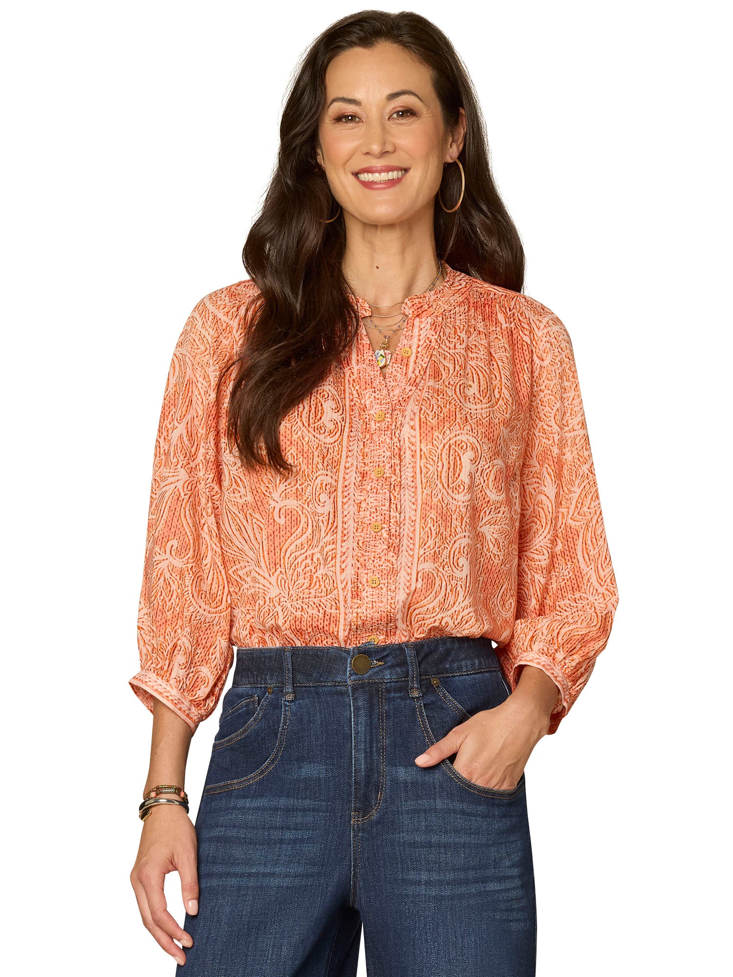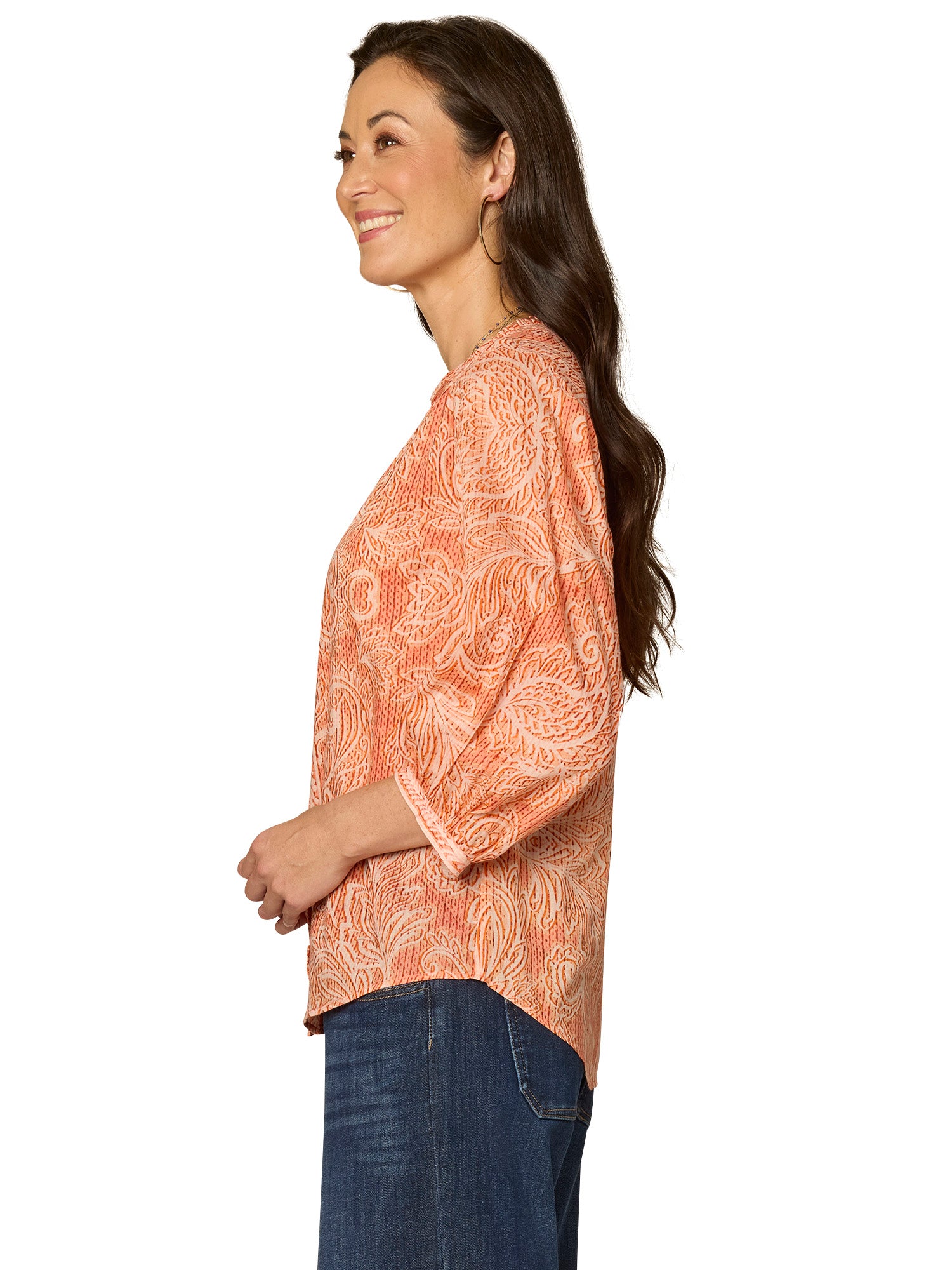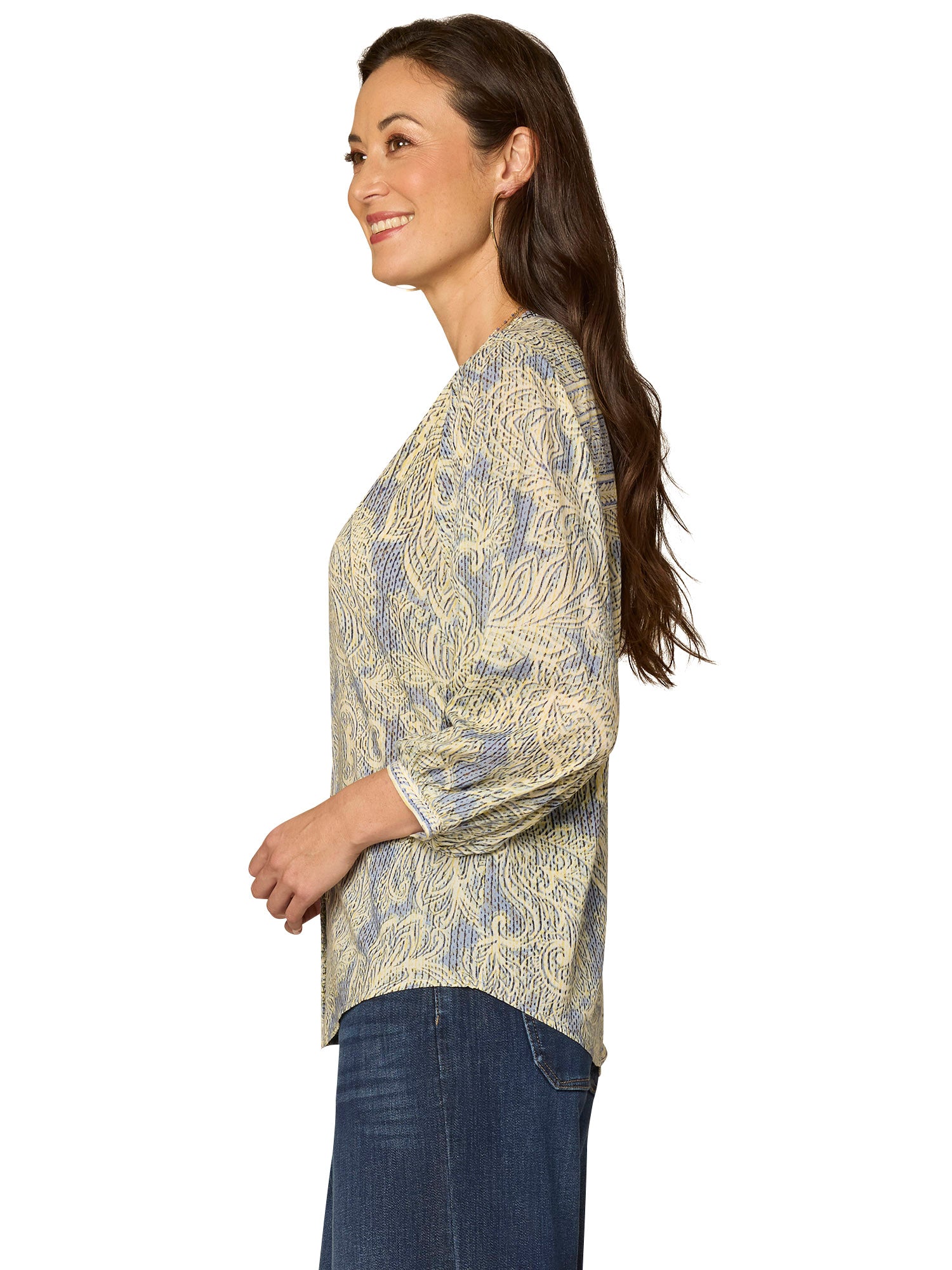 Printed Sleeveless Linen Blouse With Rounded Hem