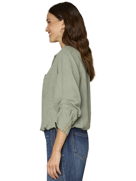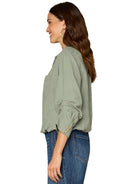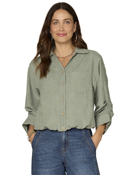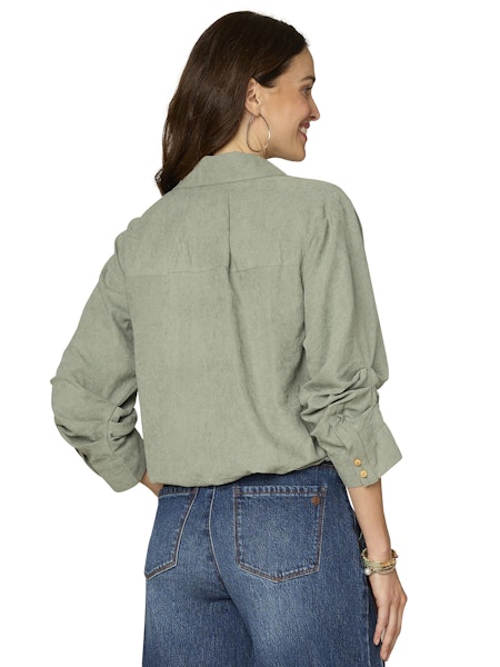 3/4 Tucked Sleeve Woven Shirt