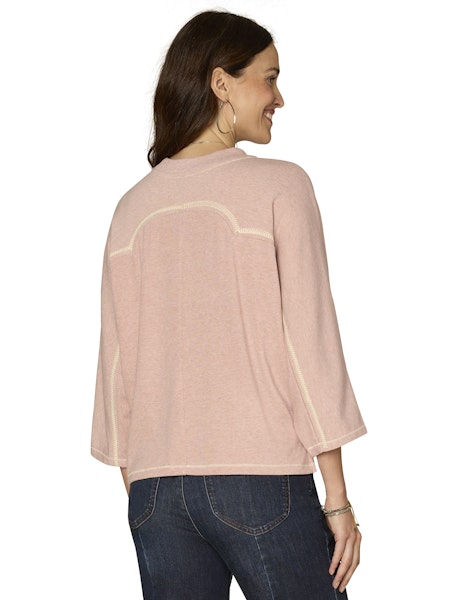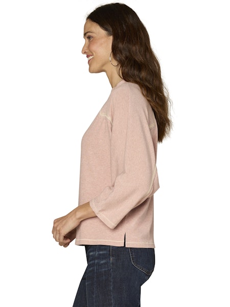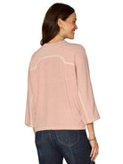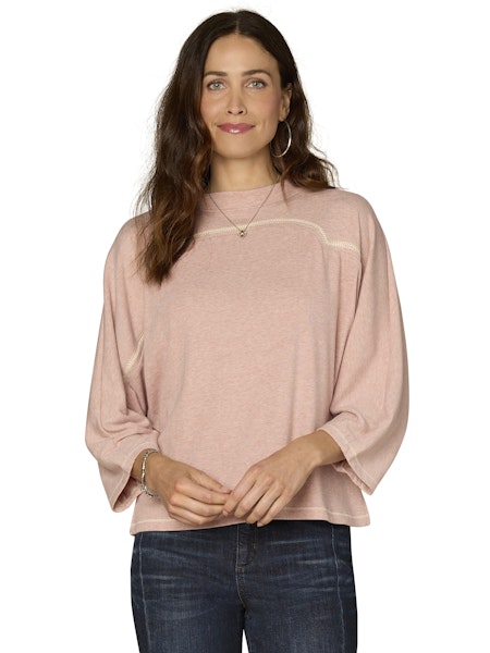 3/4 Dolman Sleeve Crew Neck Knit Top w/Embroidery Detail