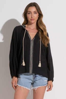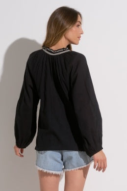 Long Sleeve Top w/Embroidery Detail. 100% Cotton.