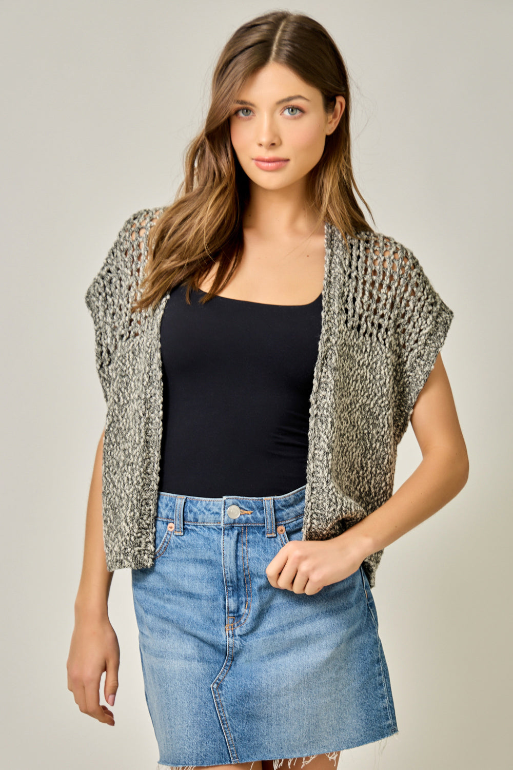 Open Front Knit Cardigan w/Cap Sleeves