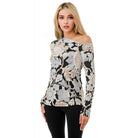 Open Shoulder Ruched Detail Top. 94% Polyester, 6% Spandex.
